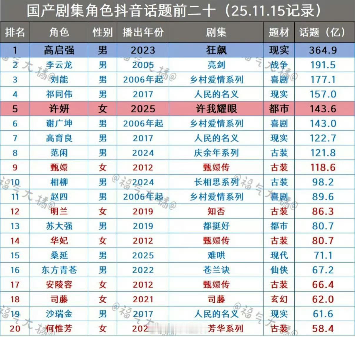 赵露思许妍🫘话题播放量突破143.6亿,升至所有角色历史第五名,且继续领跑女性
