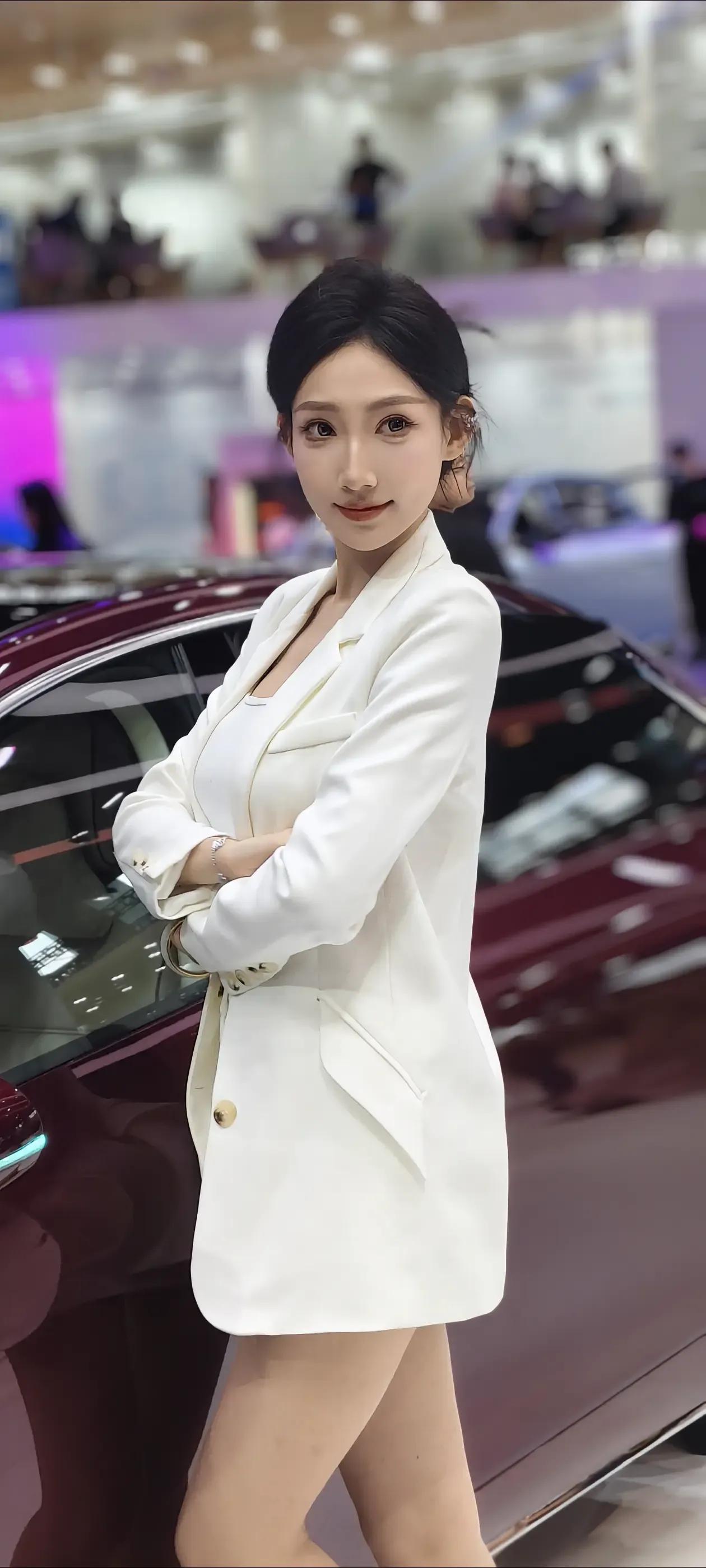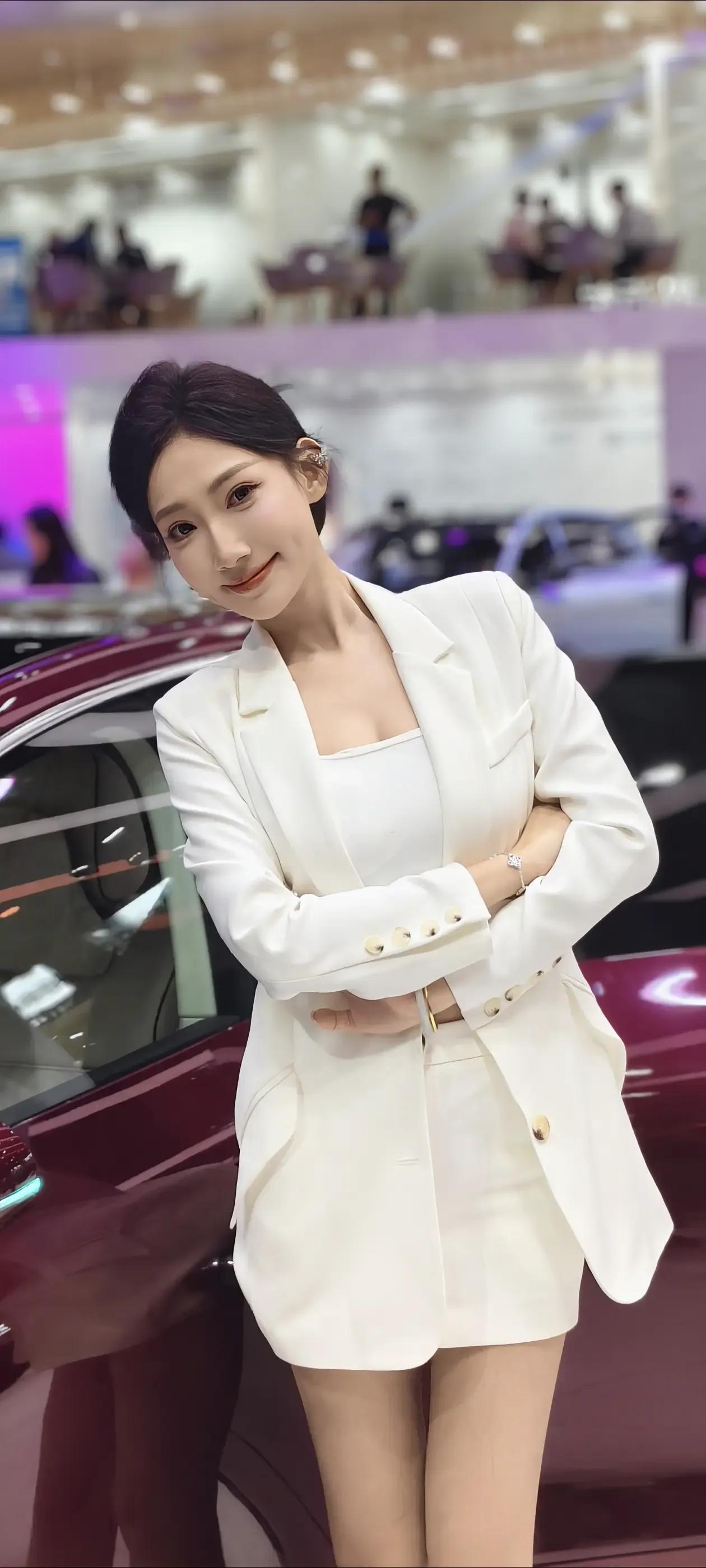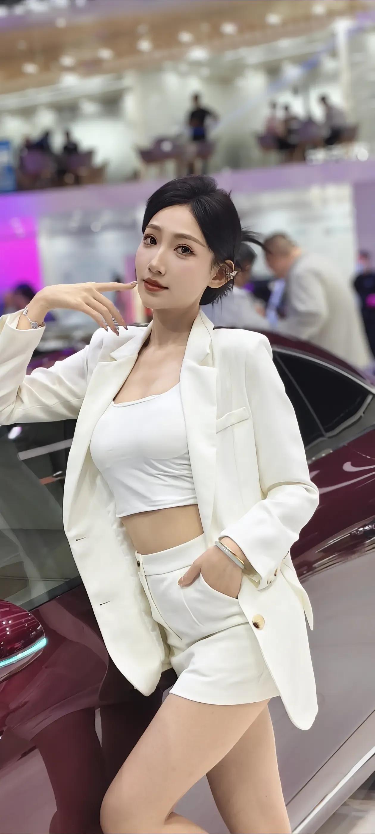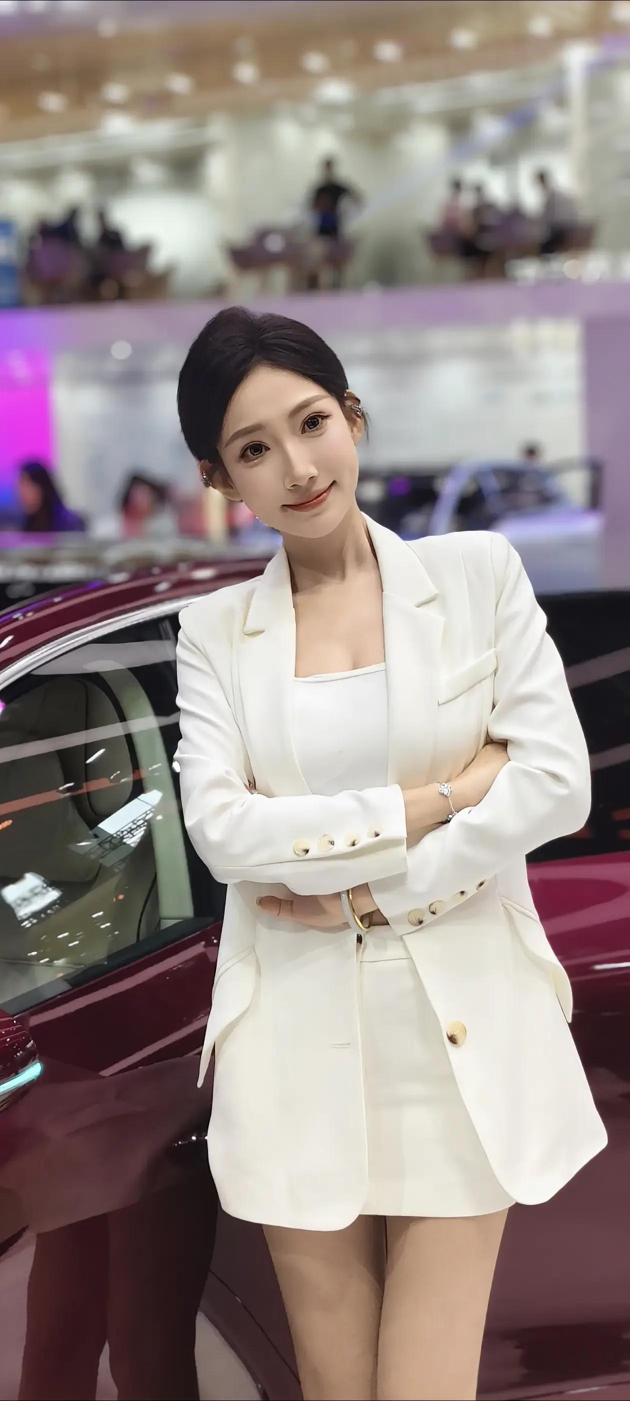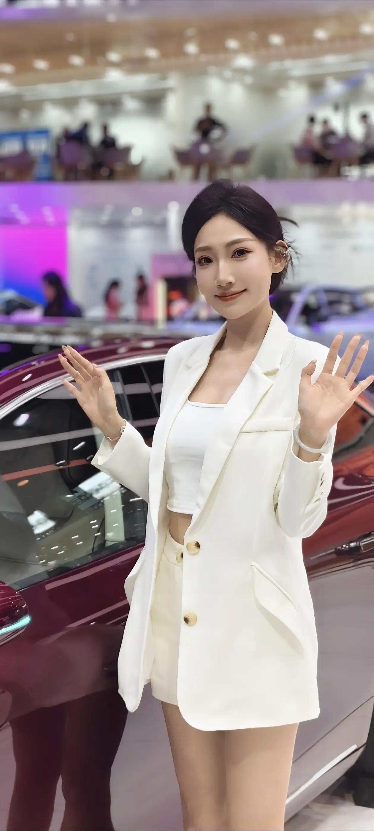 车展上,高颜值青春靓丽美女车模小瑞瑞,搭配白色西装尽显模特气质。