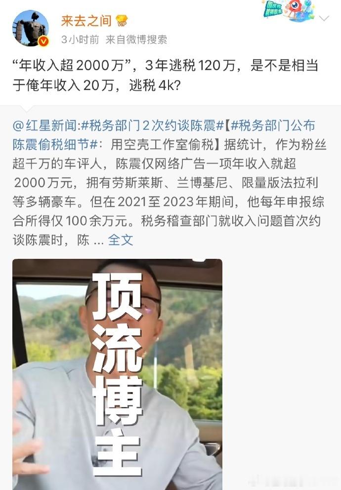来总:年收入超2000万,3年逃税120万,是不是相当于年收入20万,逃税4k?桂哥评:仅仅网络广告一项,年收入超2000万。车圈果然财大气粗啊。一个顶流车圈网红,比很多上市公司赚钱都厉害。微博好像1000多万粉丝。全网2400万粉丝。赚这么多,要是咱们,钻粉,金粉,铁粉,排名靠前,经常来玩的粉丝,不得好好宠一下吗? 后台都有排名的... 看来微博平台影响力,不容小觑啊。