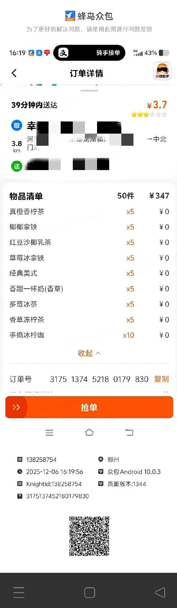 也不知道是现在外卖行业太卷了还是接这个单子的兄弟太饿了。这都敢接。关键怎么装到顾客那里去。3.8公里3块7毛钱。可以可以。给你加加油!