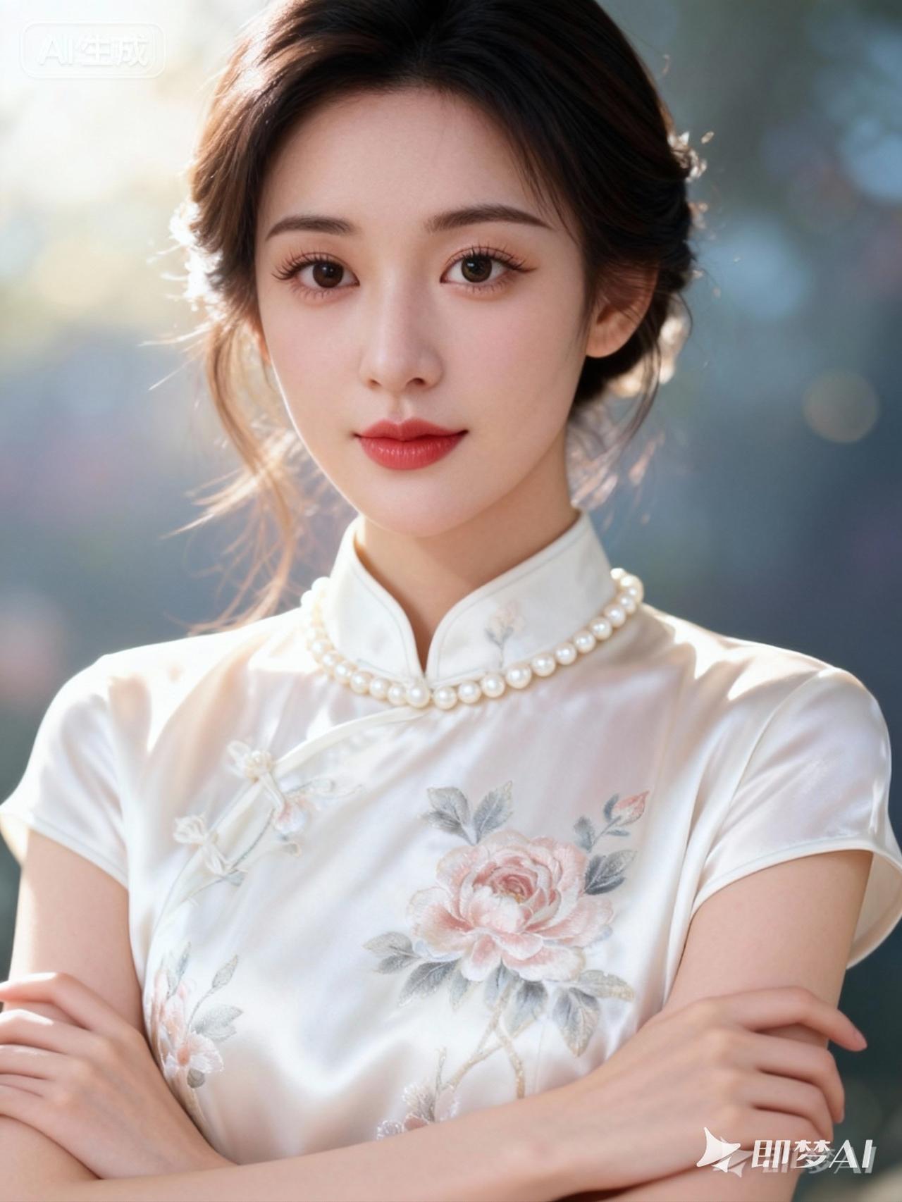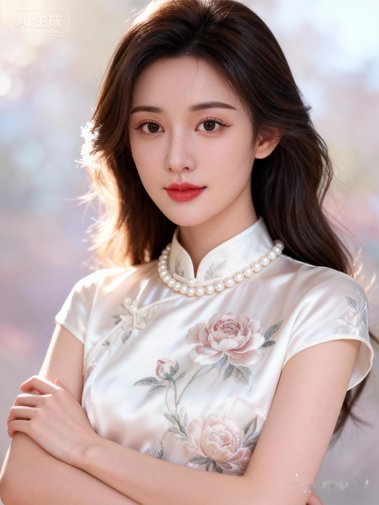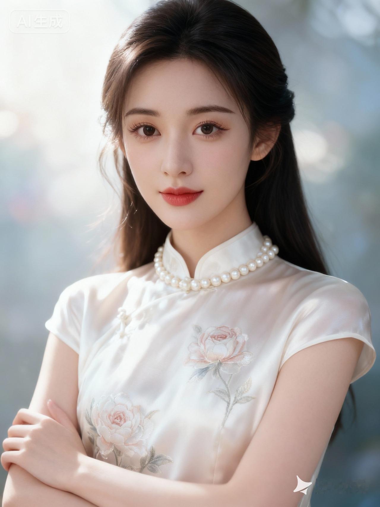 容颜清丽脱俗,清澈明亮的大眼睛,弯弯的柳眉,长长的睫毛,白到发光的肌肤,如玫瑰般娇艳欲滴的樱唇,是个难得一见的美人,琼鼻挺翘,唇不点而朱,肌肤如雪,气质出众,天姿国色,精致古典妆容,身穿一袭浅白真丝刺绣改良旗袍什么年纪的女人漂亮?