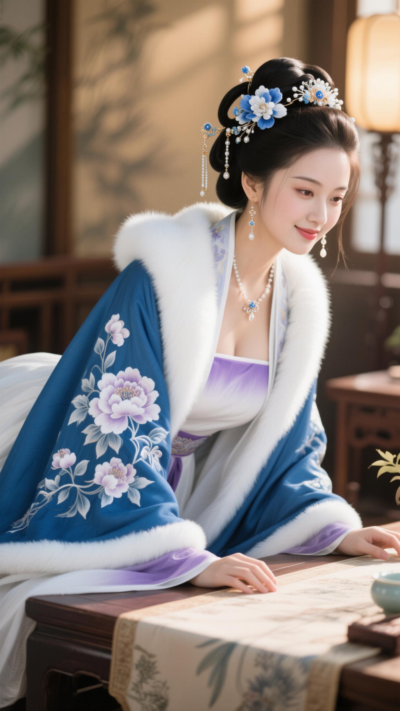 亭边一倚,连风都变温柔了!优雅气质 汉服写真 原创古风计划 国风古韵 古装 鹧鸪天·冬苑佳人 云鬓簪花缀雪光,蓝衫茸领麝尘香。 佩摇珠珞垂春露,靥点朱砂笑靥长。 风软缓,水微茫,亭边梅影蘸衣裳。 闲凭曲槛听莺语,一晌江南梦也芳。