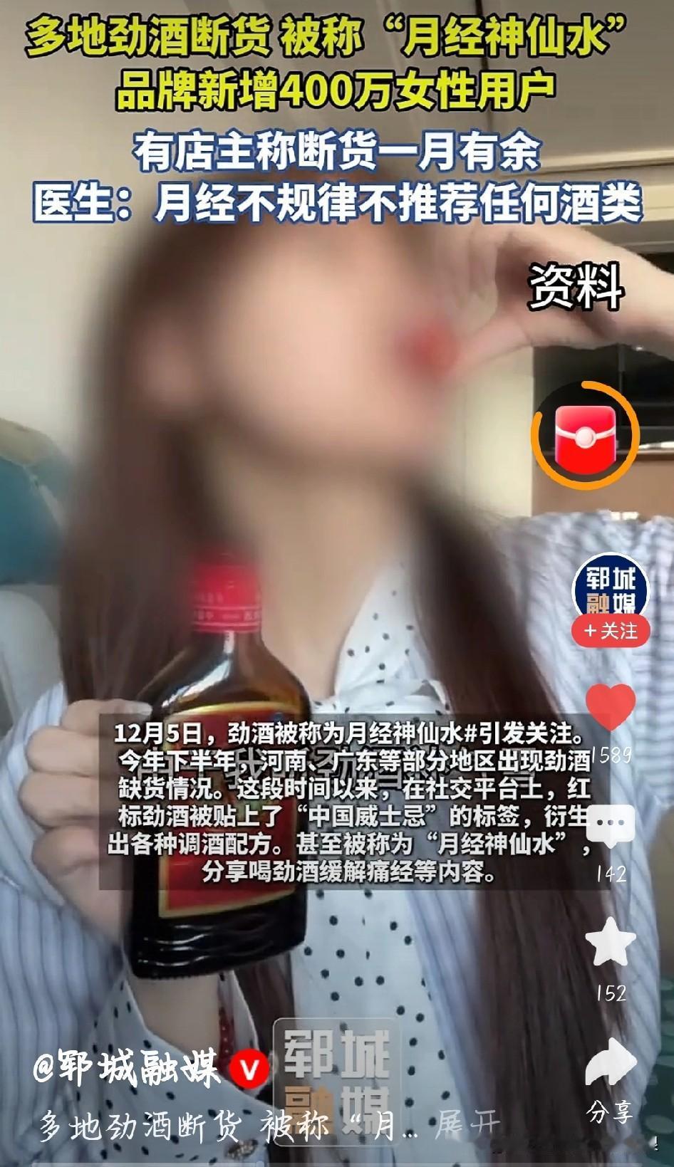 谁能想到!以前专属于父辈的劲酒,现在成了年轻女生的“神仙水”! 关键是它太懂女生需求了:35度低度不辣喉,125ml小瓶装揣包里就走,价格比奶茶贵不了多少。里面有当归、黄芪这些草本成分,经期煮点红糖姜茶兑着喝,暖乎乎的超舒服,加班、露营喝也合适。 女生们还玩出了花样,劲酒+气泡水、+旺仔、+椰奶,各种调饮解腻又好喝。品牌也机灵,推出粉色包装,戳中少女心。 短短两年就新增400万女性用户,超市都常卖断货。说到底,女生要的就是好喝、方便还能暖身的“朋克养生”,劲酒正好踩中了,不火才怪! 劲酒如何成了年轻女性的神仙水 劲酒爆红会让它走的更远吗 劲牌养生酒 图片截图于网络