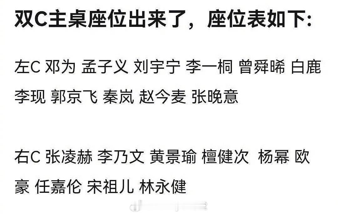尖叫之夜内场双C主桌座位图,最能直观感受哪些人最红杨幂白鹿内场双C