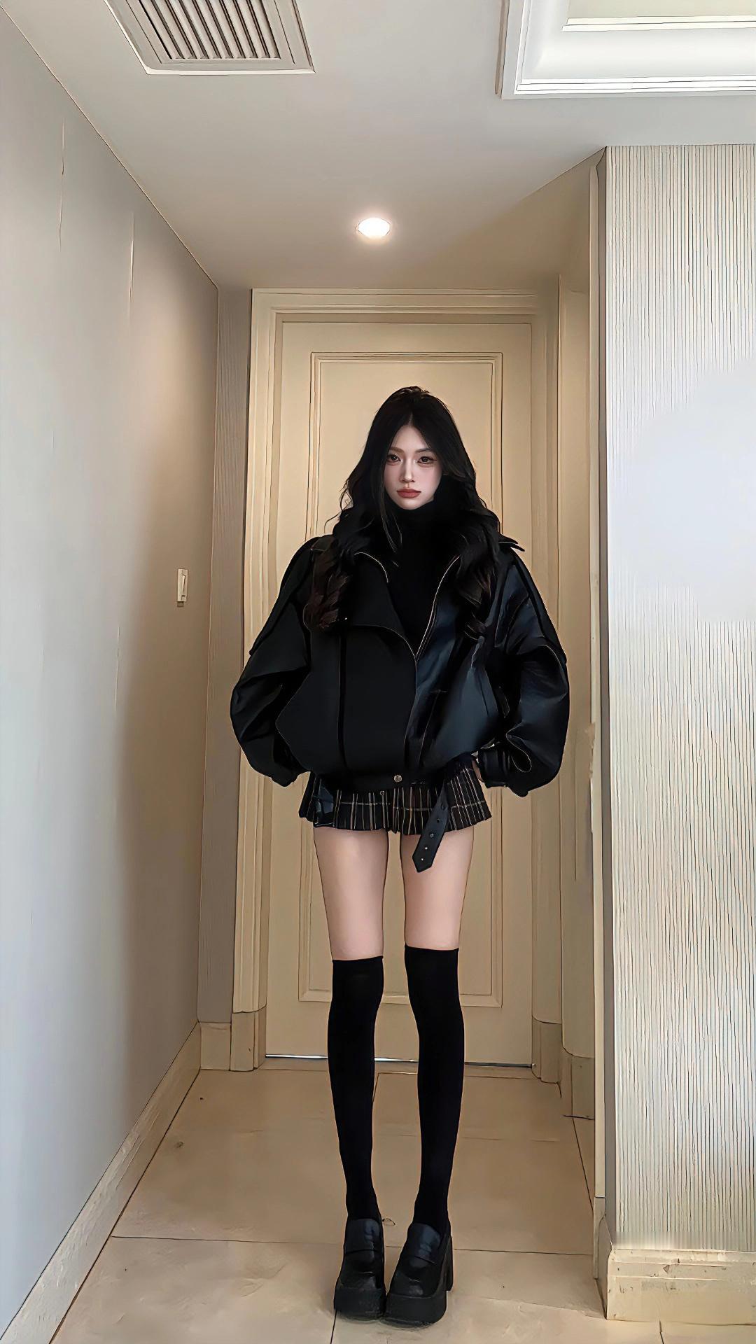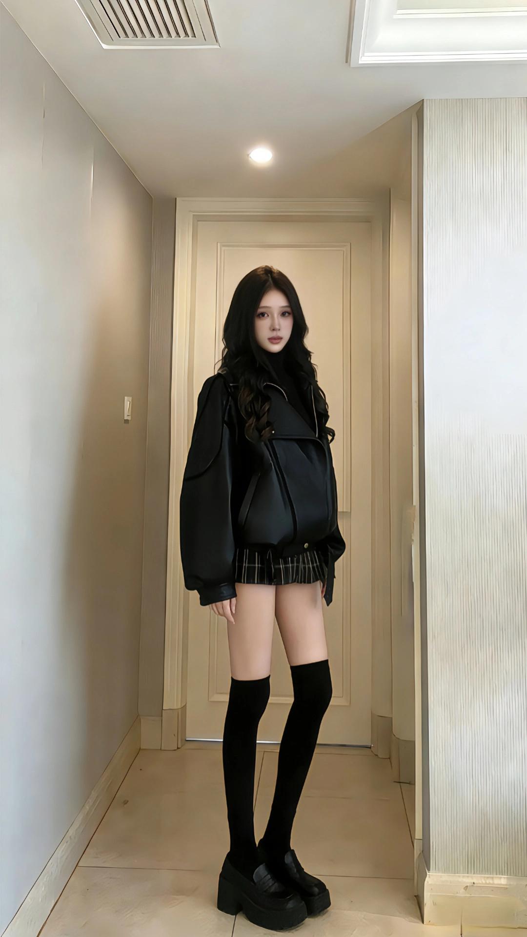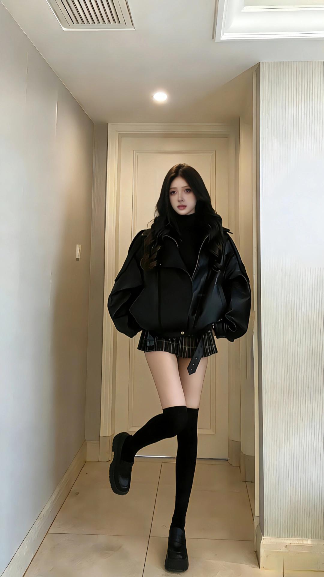 🖤暗黑甜酷风|黑皮夹克的“走廊出片公式”|||谁懂!极简走廊里随手拍都炸圈的冬日搭,黑廓形皮夹克+过膝袜这组“暗黑CP”直接把氛围焊死👇 穿搭公式:黑廓形皮夹克 + 格纹短裙+厚底鞋 = 8-12℃出街/约会万能搭 - 皮夹克自带冷冽酷感,廓形版型裹住身松弛不局促,黑调在极简空间里高级又出挑; - 格纹裙+过膝袜一衬,甜妹感混着暗黑气质,插兜的随意动作,随便拍都是都市画报既视感,走廊尽头或门框旁都能赢麻。黑皮夹克穿搭 棕色皮衣搭配 棕色短款皮夹克 黑长靴穿搭 皮夹克穿搭女 短款皮夹克穿搭 黑皮夹克外套