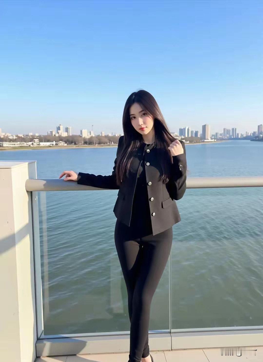 海风轻拂,黑裙美人,静享海岸风光贵气黑裙女神 黑裙感美女 海风美人照 湖边白裙美