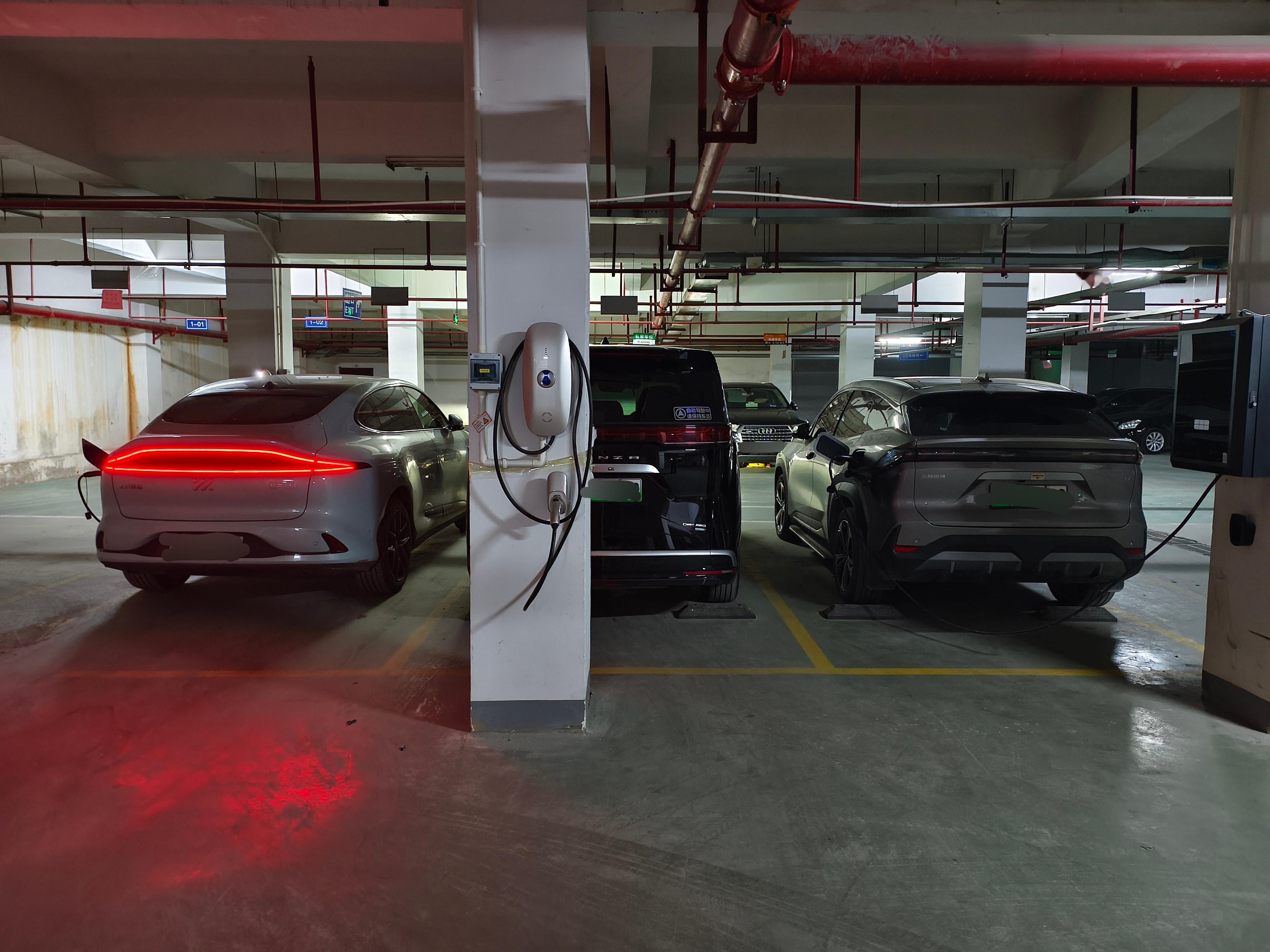 楼下地库附近区域本来没几辆新能源,结果我买了一辆装了充电桩,连着三个车位就都买了,还都装了充电桩,车位越来越挤