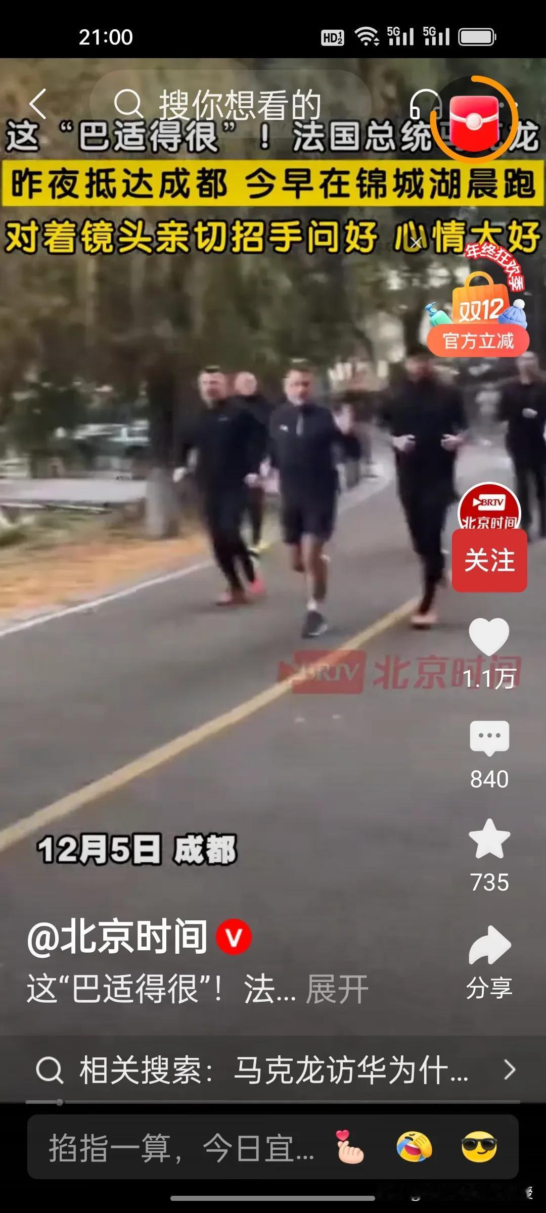 马克龙这次“成都两跑”太圈粉!跑出民心相通,更跑出合作热潮! 成都清晨的清新自由的空气里,马克龙的晨跑成了最暖外交名片,锦城湖畔跟路人打招呼,另外,川大校园下车后,马克龙跟着保镖一起奔向大学生,与大学生一起热情互动。在中国早上是可以安全放心跑步的,不用考虑治安问题,中国学生迎接马克龙也非常热情。这两跑,跑出了民心相通的温度,更跑出了中法友好的底气。 马克龙前脚刚结束访华,德国外长便紧随其后开启行程。从法国到德国,欧洲政要密集访华的脚步不停歇,欧洲国家的发展离不开中国已经成了普遍共识。