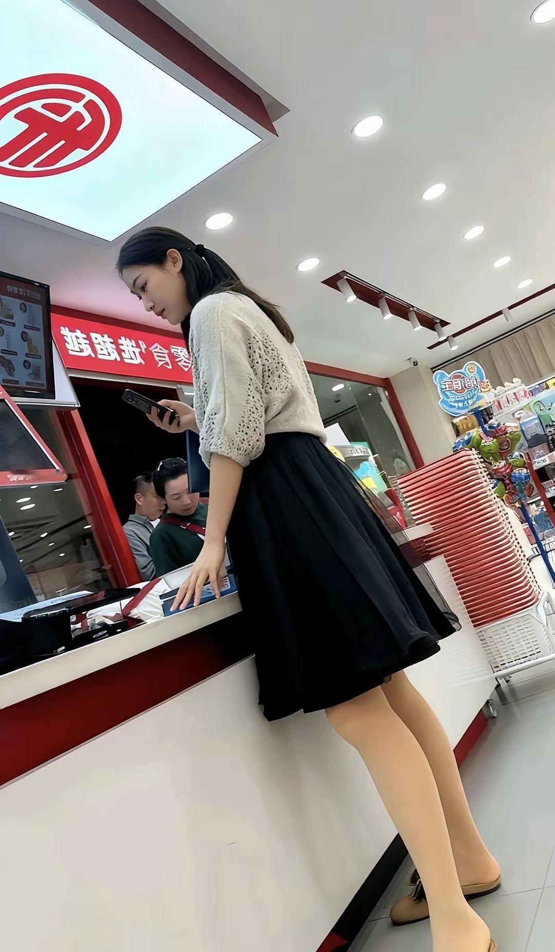 静立柜台前,心随手机动。什么叫做有魅力的女人?甜美小仙女的穿搭什么年龄的女人