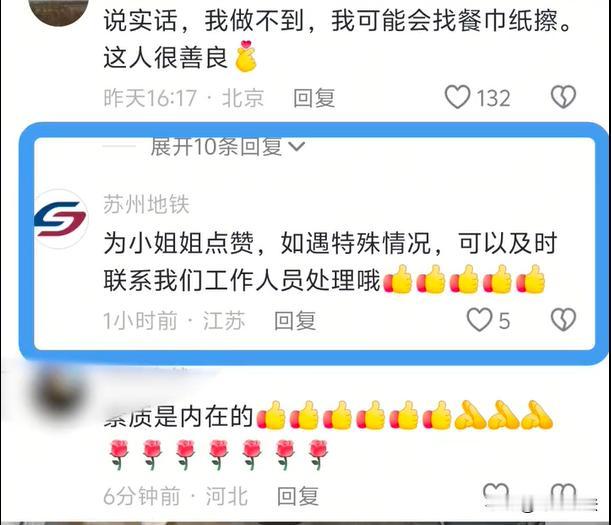江苏苏州,心灵美,更能感受到温暖。一女子坐地铁不小心打翻奶茶,她非常着急,找遍背包却找不到一张纸巾,但是,看到地面的污渍,小姐姐又害怕奶茶会影响到别人,女子决定蹲下来,取出围巾,直接擦拭地上的奶茶。最后,默默擦干净地面,女子才离开了地铁安心出站。 澎湃新闻12月5日报道了这则新闻。据报道称,这件事已经被苏州地铁站得知,工作人员指出:非常感谢小姐姐的热心与责任,如果遇到麻烦,是可以联系地铁服务人员提供帮助的哦! 在苏州一列地铁上,一位女子正坐在地铁上玩手机。当时她随身携带着一杯奶茶,正聚精会神看手机的她,并没有留神,一不小心打翻了身旁的奶茶。 瞬间,奶茶翻倒,里面的奶茶“哗哗”的往地上流淌。女子一时间慌了神,非常害怕奶茶影响到其他乘客,万一他人踩到奶茶滑到,这下责任可就大了。 此刻,最该做的事情就是,务必要把地上的奶茶给擦拭干净。女子翻开背包,找遍了每个角落。但是尴尬的是,背包里并没有一张纸巾。 但是也不能放任自己制造的污物不管,如果放任奶茶到处流淌,而自己此刻擅自离去,说实话,就会感觉自己也太没有素质啦,也极其不负责任。 这时,女子注意到自己脖子上的围巾。二话不说,她想到了一个好方式——使用围巾来擦拭污渍。 说做就做,女子拿起脖子上的围巾,蹲下来,开始慢慢的擦拭地面上的污渍,她先把脚下附近的奶茶给擦拭干净。 由于列车还在不断前行,部分奶茶已经流向了地铁门旁边,女子又赶紧追到栏杆扶手处,继续蹲下来,将角落这边的奶茶污渍细心的擦拭。 就这样,女子默默的把地面上的奶茶一遍一遍擦拭,最终也终于清理干净。女子非常执着,并没有表现的很急躁,而是跟做家务活一样,非常有耐心。 一旁的乘客看到了,忍不住将这一幕给拍摄下来,拍摄者自己也感觉:这真的是第一次见到如此有素质的姑娘。很多人如果制造了垃圾,可能会使用纸巾擦拭。实在找不到纸巾,兴许就会一走了之放任不管。 在把奶茶污渍完全擦拭干净之后,女子才拿起自己的随身物品走下地铁,离开了地铁站。 这个视频,被拍摄者给上传到网络上,很多网友纷纷给这位姑娘点赞,认为这可真是一位内心平静、非常有素养的人。 事件也被苏州地铁工作人员得知,他们也纷纷为小姐姐点赞,并且指出,如果遇到特殊情况,可以及时联系地铁工作人员,他们会配合帮忙解决哦。 兴许围巾脏了,但是小姐姐用干净的灵魂,净化了地铁的环境,让大家在寒冷的冬天,可以感受到一丝丝温暖。小事见人品,更加可以彰显一个人的品质与素养。 1.乘客搭乘地铁时,不小心将奶茶洒落在地面上,如果面对污渍置之不理直接离去,此行为是否违法呢?使用围巾擦拭干净,彰显这位小姐姐怎样的品格呢? 根据《轨道交通乘客守则》规定可知,乘客有责任维护乘车环境,禁止随意吐痰、便溺、乱扔垃圾、果皮纸屑、杂物等。如果将污渍洒落在地并且直接离开不清理,严格来说此举属于违法行为。 本案中的小姐姐主动用围巾擦拭奶茶污渍,并且擦拭的非常干净,展现了小姐姐具备极高的文明素养。同时,也展现出小姐姐具备责任感,此举不仅可以规避法律风险,更加维护了公共环境的整洁卫生,为乘客们树立了榜样,值得点赞。 2.如果在地铁上擦拭污渍,一时找不到纸巾,是否可以联系地铁工作人员寻求帮助呢? 根据《城市公共交通条例》规定可知,如果不小心将垃圾洒落在地铁等交通工具上,可以及时联系工作人员,对方会提供专业的清洁工具和帮助,避免自己处理可能会带来不便或者风险。 当小姐姐遇到这样尴尬的情况时,主动联系地铁上的工作人员其实是最佳选择。清洁人员可以提供帮助,避免使用干净的围巾来擦拭。不过小姐姐的表现还是值得肯定的,蹲下来、仔细擦拭地面的她,真是彰显了个人文明素养。 讲文明、树新风,这也是城市名片。看完本案例,大家都作何看法呢,欢迎评论区一起来讨论吧。