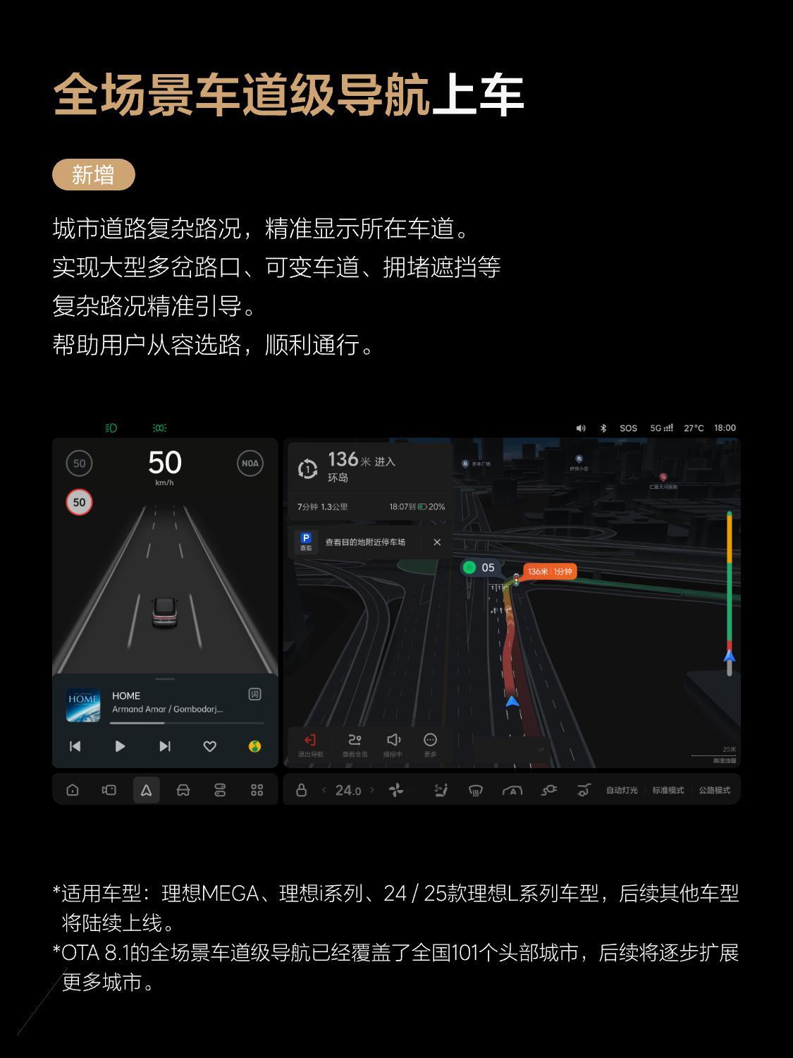 理想汽车 OTA V8.1:47项新增功能,31项体验优化。其中:- VLA 优化绕行更丝滑、轨迹更稳定。(后续出一个小测评)- VLA 泊车新增一言前往- AD Pro 提升了泊车的能力- Livis 眼镜互联上线但是我觉得车道级导航,至少我自己在任何一款车上都不喜欢用。 我建议过很多车厂说别花费时间在这个功能上,但是还是人有我有吧,用不用你来决定。