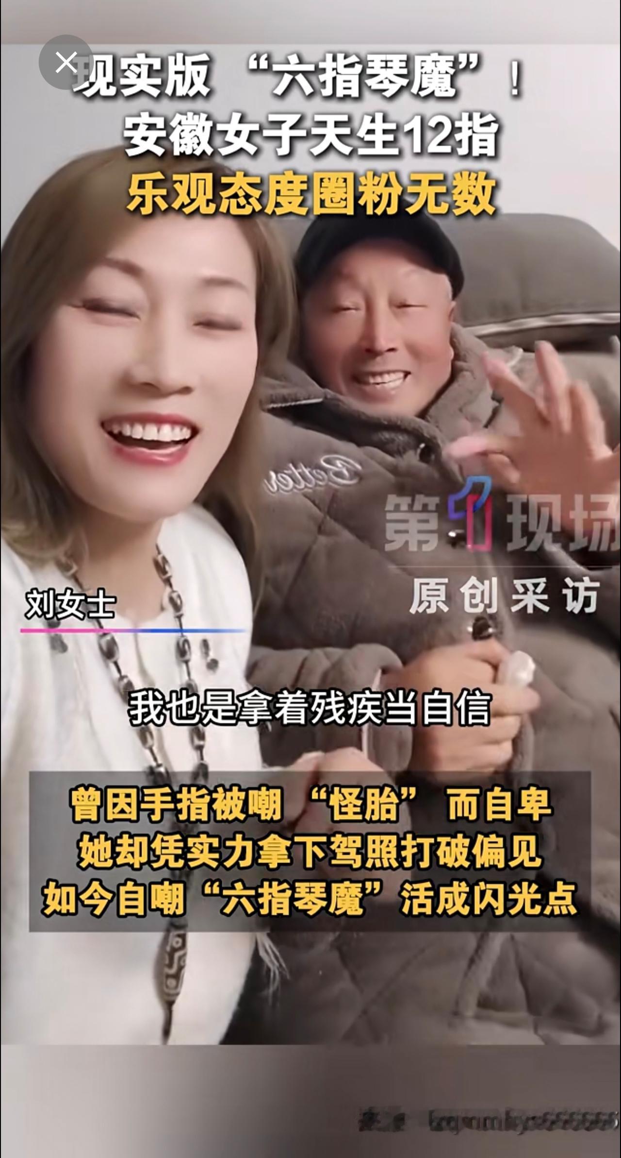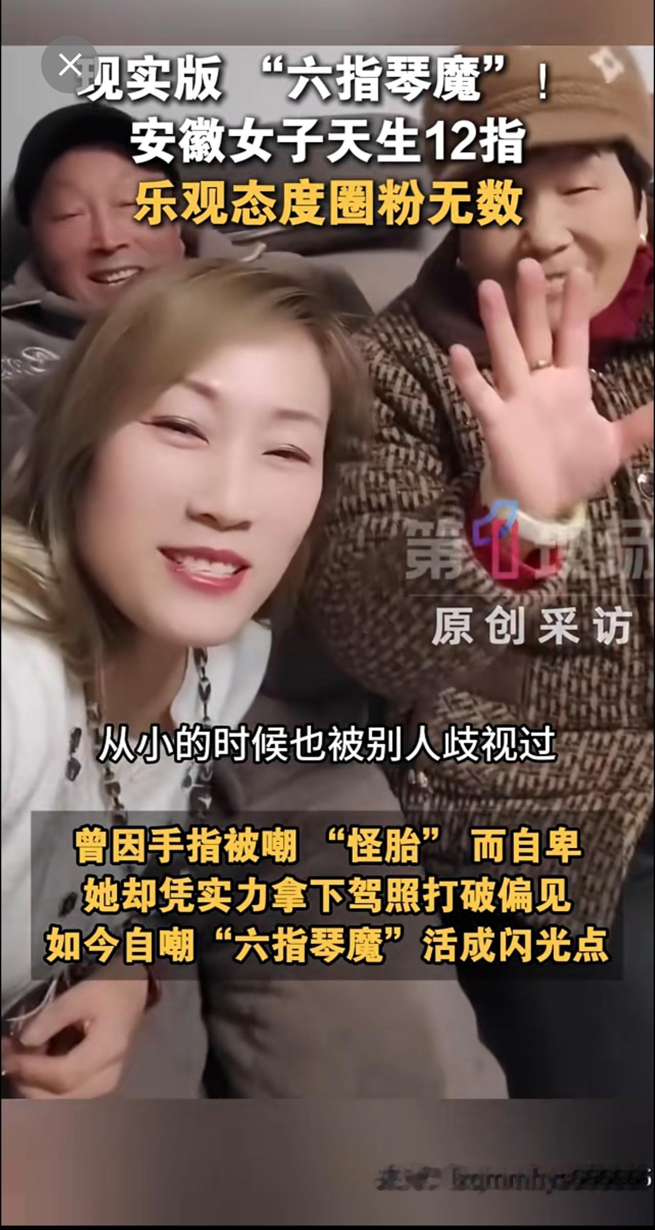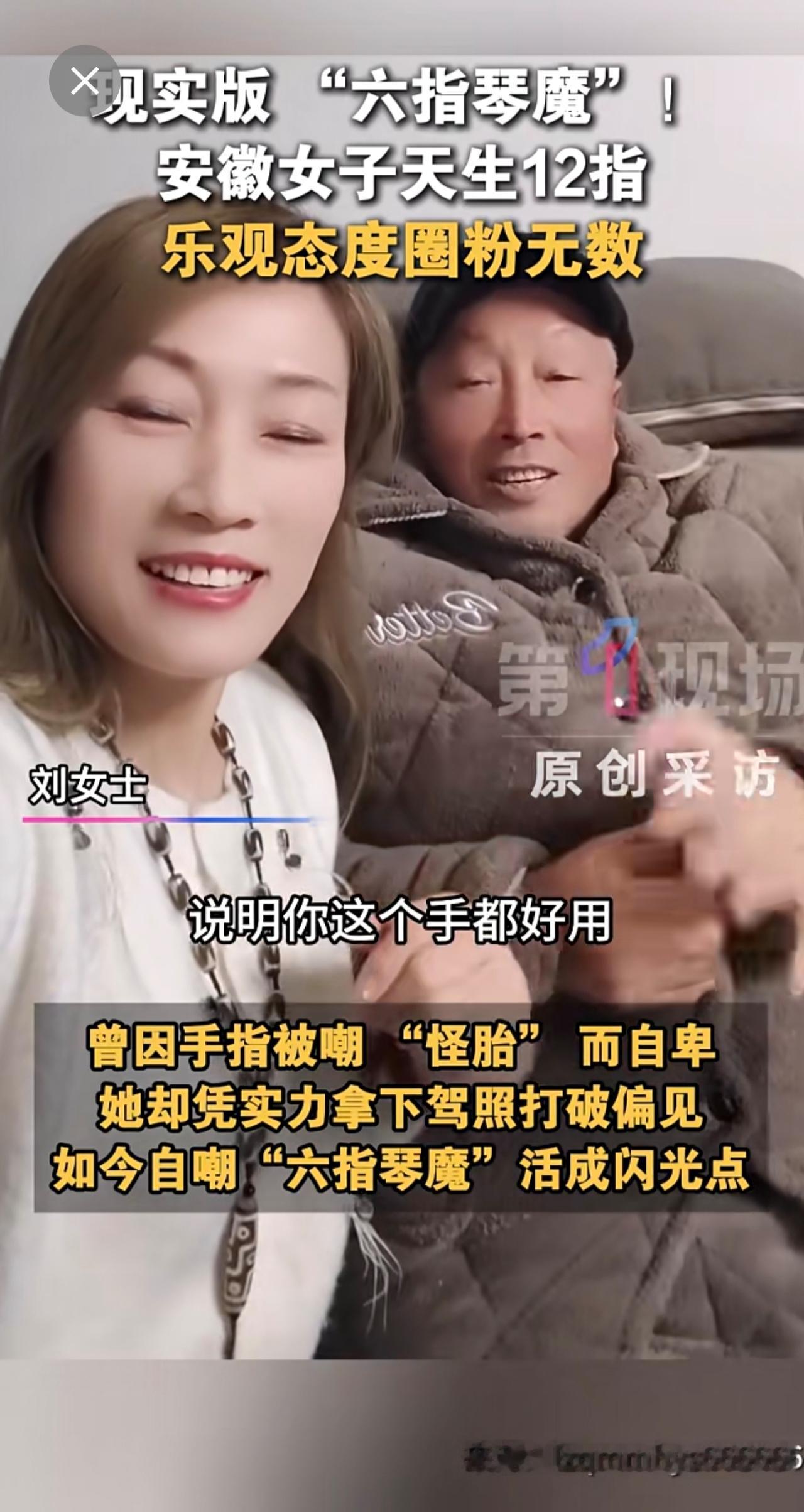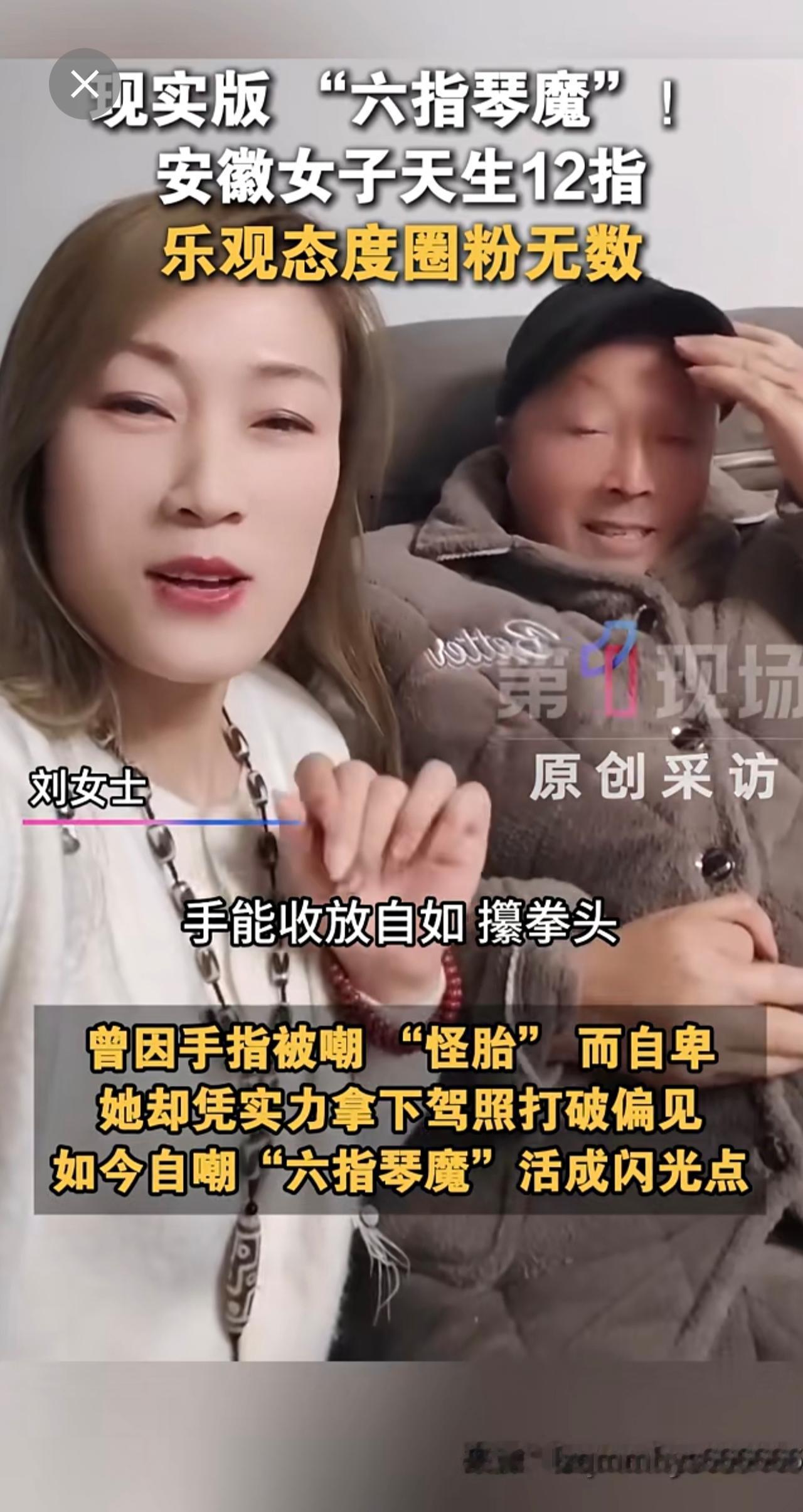 12月5日(采访时间),安徽宿州,刘女士天生12指,家族6人遗传同款特征。曾因手指被嘲“怪胎” 而自卑,她却凭实力拿下驾照打破偏见,如今自嘲“六指琴魔”活成闪光点。来源:lzqmmhys666666 六指琴魔