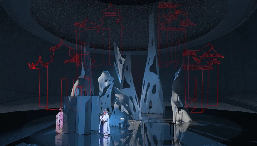 《牡丹亭》六角亭舞台设计草图—情不知所起…