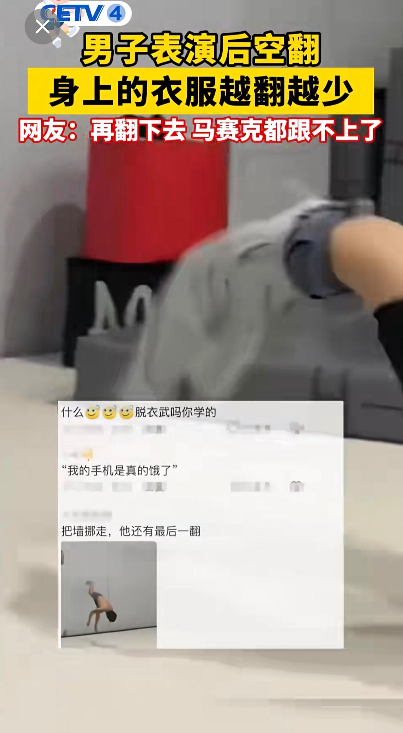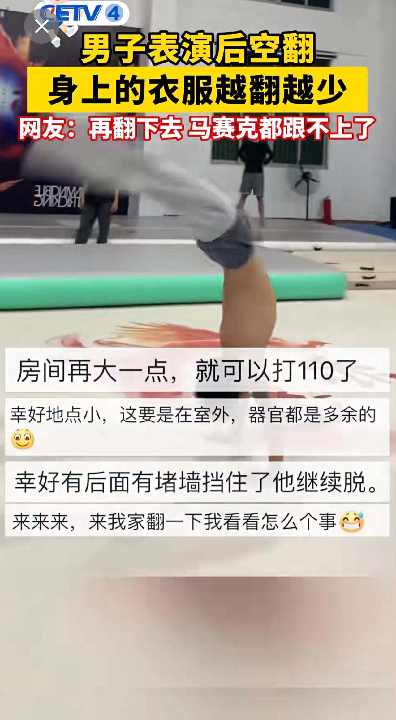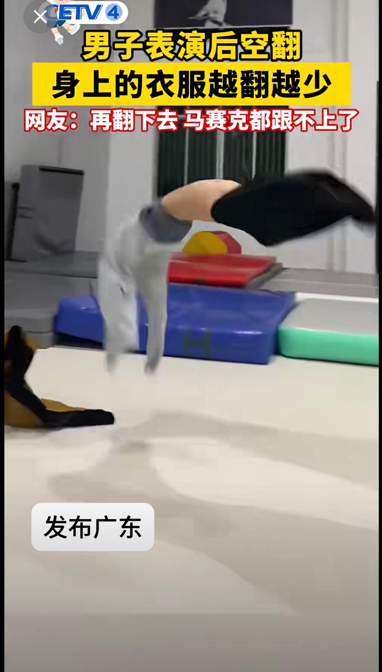 男子表演后空翻身上的衣服越翻越少,网友:再翻下去马赛克都跟不上了