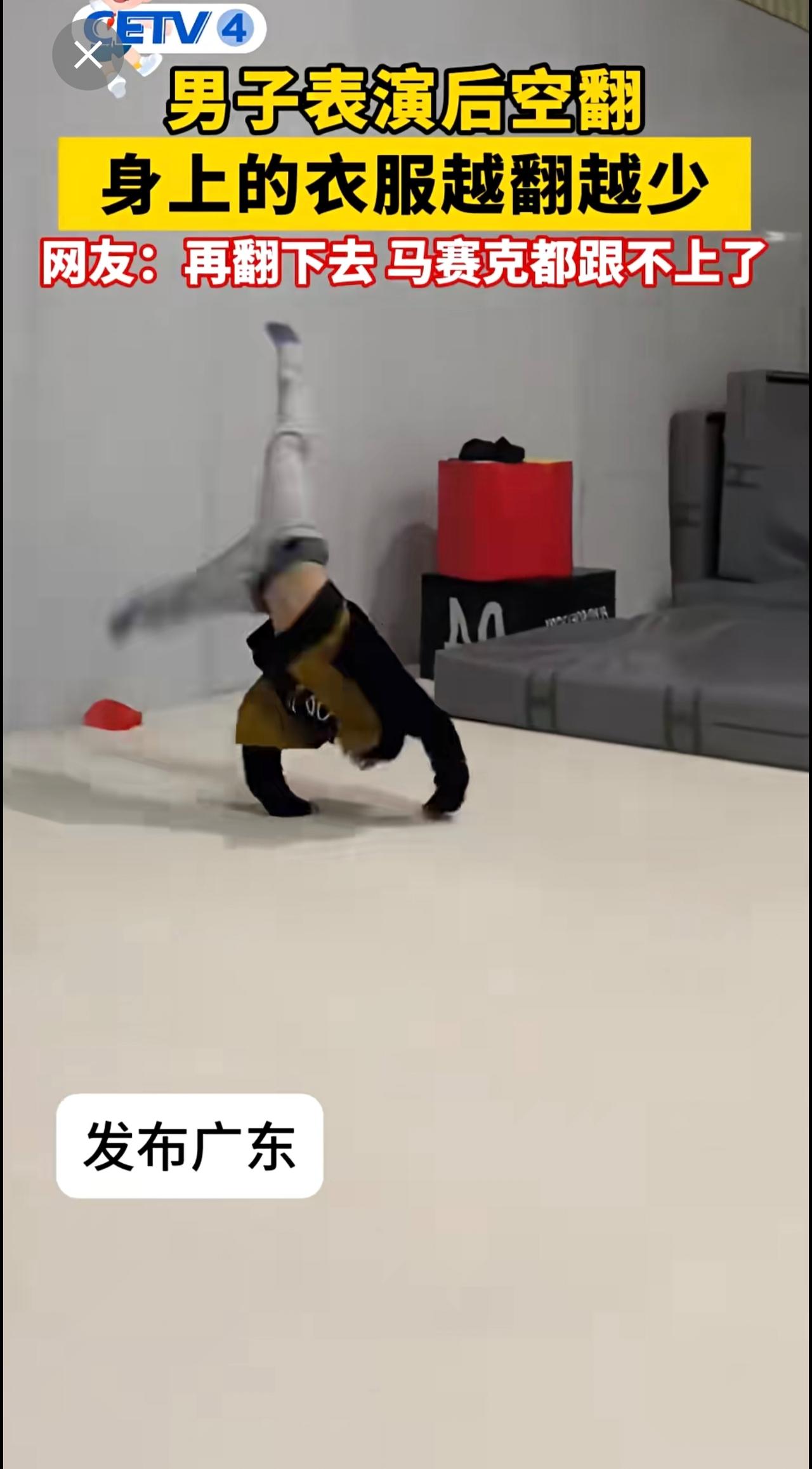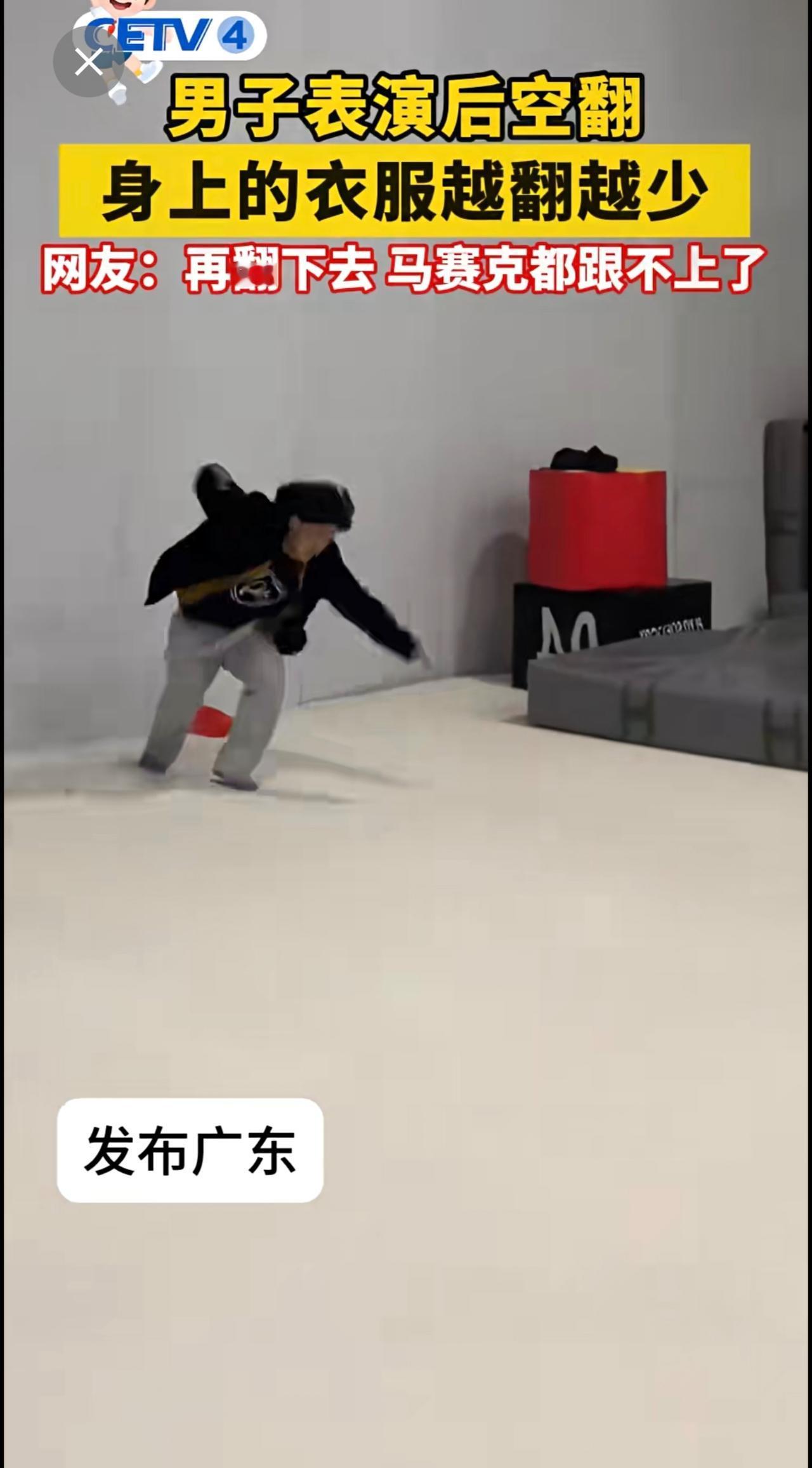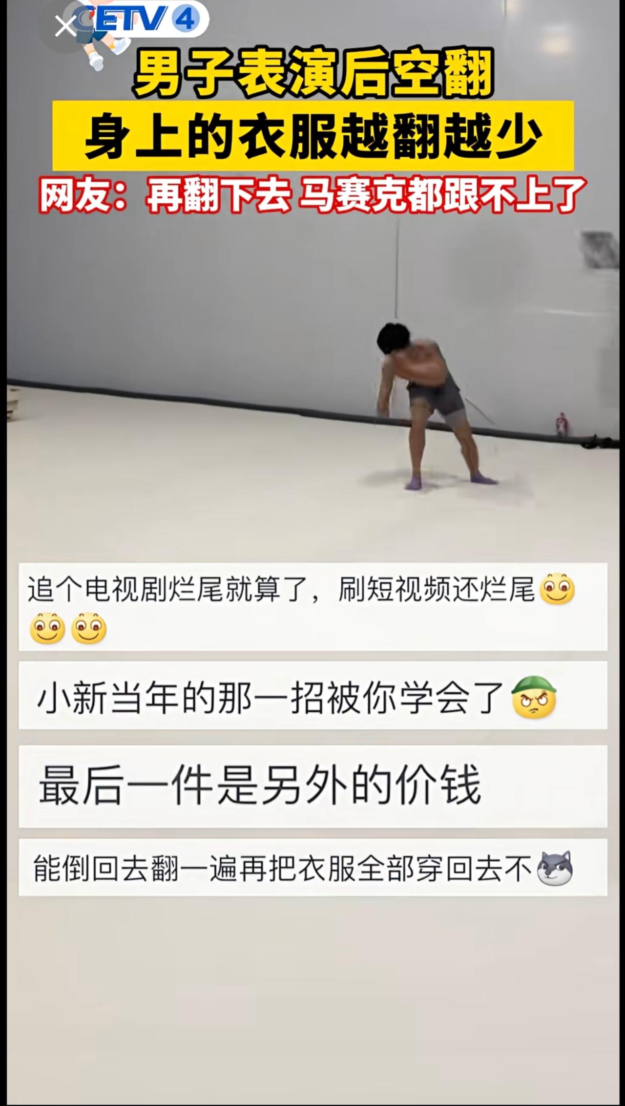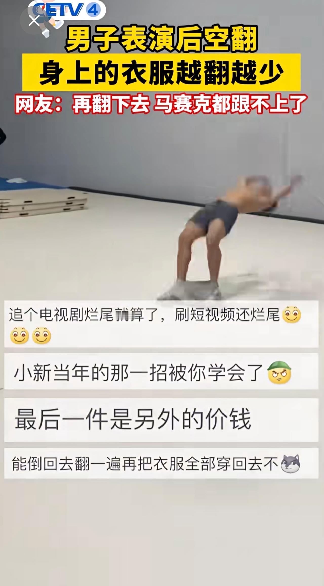 男子表演后空翻身上的衣服越翻越少,网友:再翻下去马赛克都跟不上了