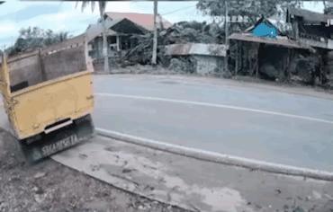 看着挺搞笑,其实隐患很大。门没关,升降板没升起来,这司机是多马虎啊