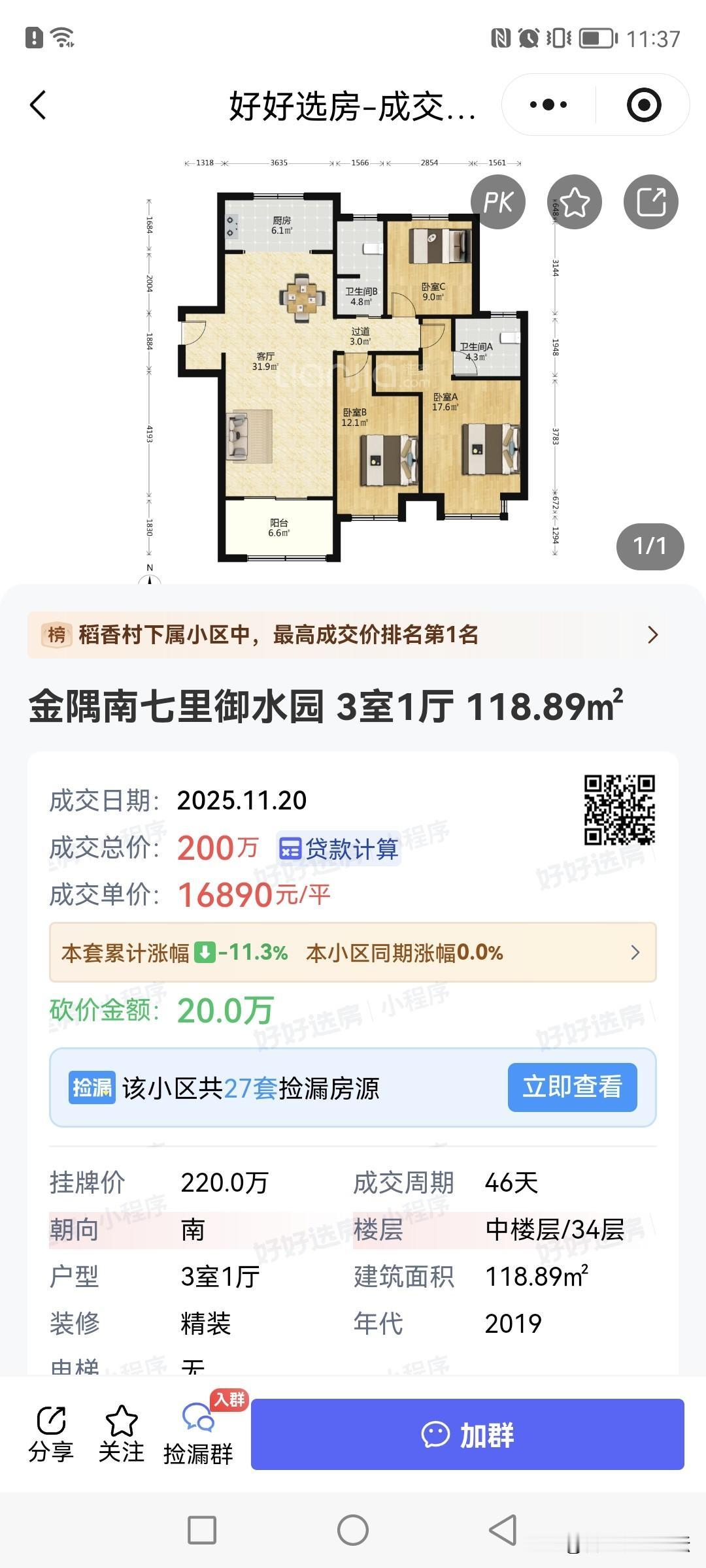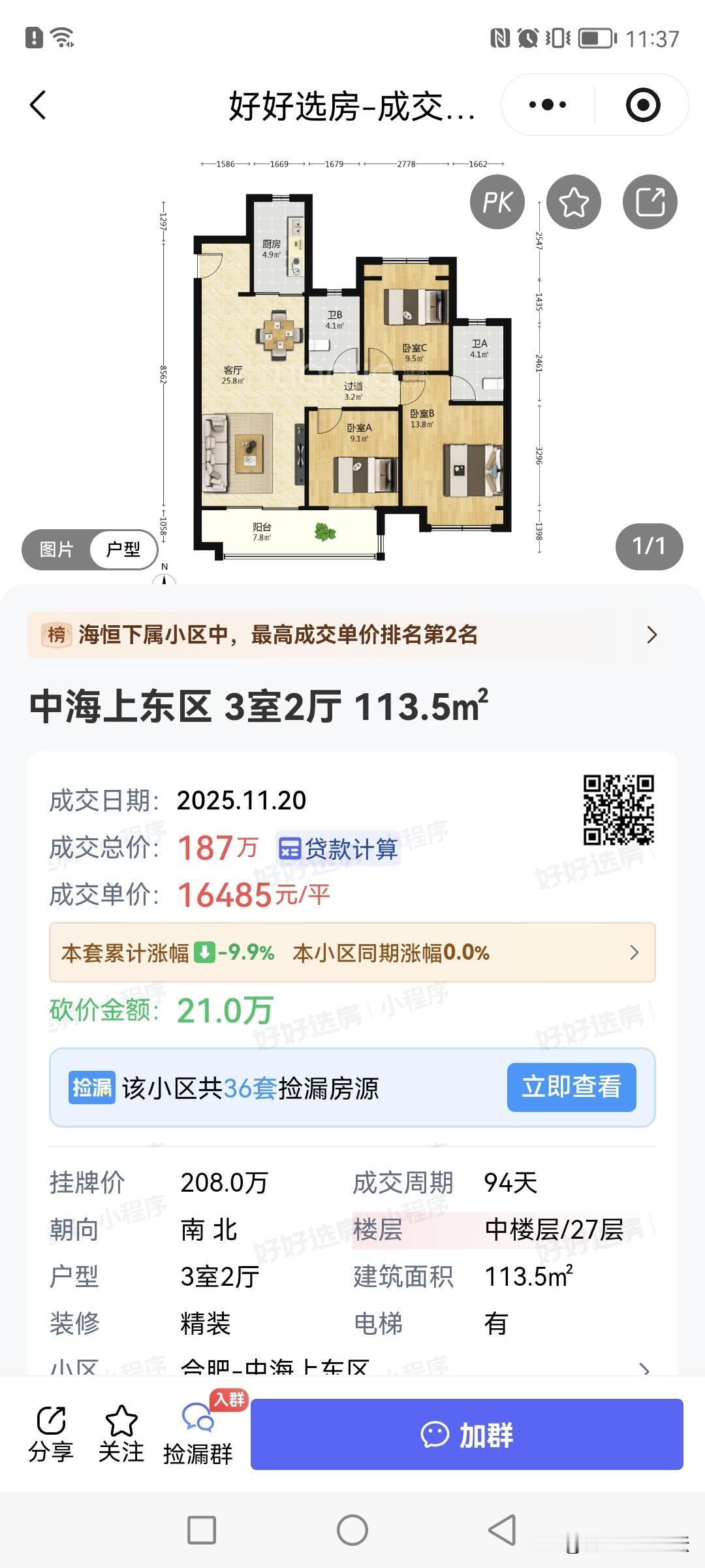 合肥热门的一些大高层最近成交的价格的确还可以。 金隅南七里这两年的确是价格的高峰,再等几年想卖这个价格就难了。置地柏悦公馆大平层单价三万。中海上东区到了单价一万六。