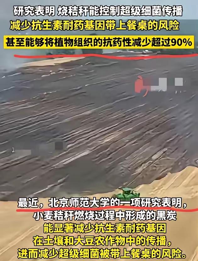 谁能想到?过去因“制造雾霾”被各地严令禁止、农民烧了就要挨罚的秸秆焚烧,如今竟爆出逆天功效——北师大最新研究显示,其产生的黑碳能将农作物中的抗生素耐药基因削减90%以上,直接掐断超级细菌通过食物链入侵人体的路径! 有网友评论道:说烧秸秆污染空气,都是西方人提出来的,秸秆禁烧后的草木灰是最好的钾肥,焚烧又能杀死很多害虫(包括卵),少用了很多化肥与农药,利远大于害!传统农耕经验结合现代科学,秸秆焚烧有其合理性。农村煤火,柴火做饭更应提倡发扬,不要断了农村烟火,我们是乡民不是神仙。 也有网友说:改厕所也是不好,都排入河里了。祖先五千年是把粪便入坑发酵后种地,可肥了。现在全排入下水道,排入河里给下游人吃..穷苦的老农民,现在的生活就像走钢丝,遇到一帮不懂怎么种地的专家指挥以种地为生的人怎么种地,天理何在,公道何在 还有网友是这么说的:坚持科学导向,科学利用秸秆,多余的及时焚烧掉。改造土壤。防止雨季堵塞河道和涵洞。农村土灶也应恢复,收回来的秸杆引火做饭,地里的短茬能烧得更快,避免长时间燃烧造成烟气过大! 几千年来都是这样连虫害一起烧掉的事情,竟然今天被发现证明了。这一发现着实让大家重新审视了秸秆焚烧这件事。一直以来,我们都被“秸秆焚烧会制造雾霾”的观念所束缚,却忽略了它背后隐藏的诸多益处。 从农业生产的角度看,农民们祖祖辈辈都有焚烧秸秆的习惯,这其实是一种传统智慧的体现。焚烧后的草木灰富含钾等多种矿物质元素,是天然的优质肥料,能为土壤提供养分,促进农作物的生长。而且,正如网友所说,焚烧能杀死大量害虫及其卵,减少了农作物遭受虫害的风险,进而减少了农药的使用,保障了农产品的质量安全。 再看看当下所谓的“科学改造”,像改厕所和秸秆禁烧等举措,看似是在推动农村的现代化和环保化,实则在实施过程中出现了不少问题。改厕所后粪便排入河里,不仅污染了水源,还浪费了宝贵的有机肥料;秸秆禁烧使得大量秸秆堆积,不仅堵塞河道和涵洞,还为害虫提供了滋生的温床。 如今北师大的研究成果,无疑为我们打开了一扇新的窗户。我们应该以更加科学、客观的态度去对待秸秆焚烧问题。一方面,要充分利用现代科学技术,对秸秆焚烧进行合理规划和管理,比如选择合适的时间和地点进行焚烧,减少对空气质量的影响;另一方面,也要尊重和传承传统农耕经验,让科学与传统相结合,发挥出最大的效益。 农村土灶的恢复也是一个值得考虑的方向。它不仅能解决秸秆的利用问题,还能让农村保留那一抹独特的烟火气。让我们重新找回那些被遗忘的传统,让农村的土地重新焕发生机与活力。