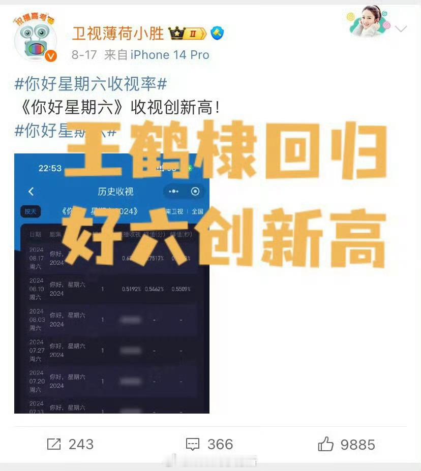 王鹤棣收视福星参与的录制多次登顶最高收视hi6收视率第一