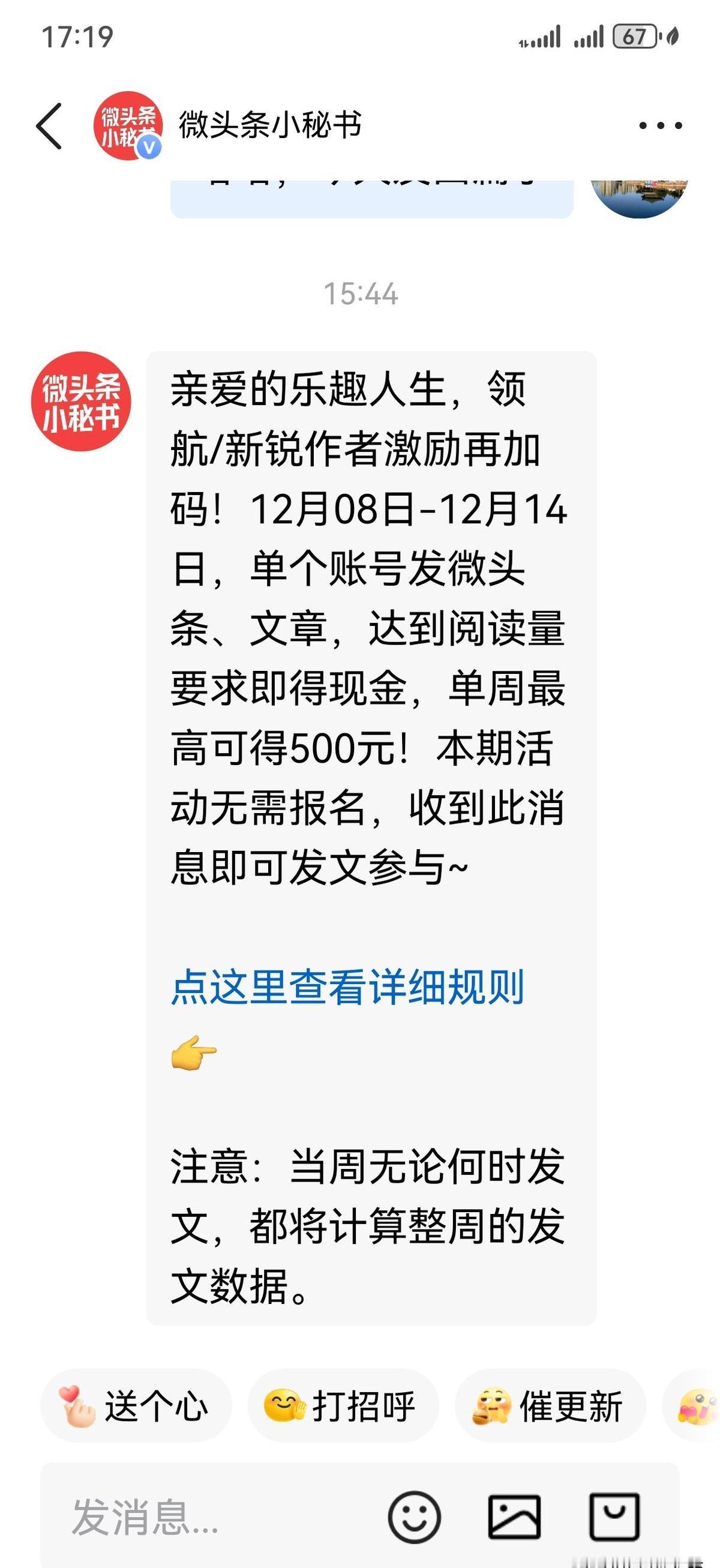 突然收到“微头条小秘书”的弹窗,心里咯噔一下,头条这次是真要在创作者身上砸钱了! 单篇阅读达标直接奖500块,这哪是写文章,简直是直接发红包,圈里不少人都坐不住了。 赶紧去扒了下底细,这不是空穴来风。 之前生机大会上就喊出要投10个亿扶持,现在看来是真金白银落地了。 最刺激的是结算变了,以前按周算,现在直接“日结”,这节奏对于咱们这种急性子太友好了。 门槛也有点意思,虽然建议千粉,但关键还是看内容,原创是底线,你要是能配上3张图,再带上个的官方话题,流量恐怕要直接起飞。 不过咱也别光看贼吃肉,头部那些月入3万的大神确实让人眼红,但那是少数。 咱们普通人想分一杯羹,还得靠真本事,千万别信那些刷量的歪门邪道,一旦封号哭都来不及。 这波红利到底能不能接住,还得看各位怎么玩了。 话说回来,你们觉得现在入场写微头条做副业,还来得及吗? 评论区透个底!