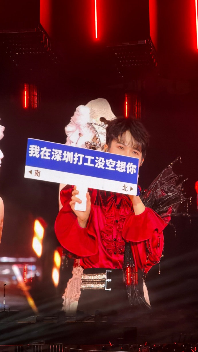 周深举这牌班味一下就上来了 这牌子举得也太“深圳”了吧!“我在深圳打工没空想你”,配上“因为这是东西”的神解释,周深直接把深圳打工人的精神状态演活了。那种忙碌里带点自嘲,自嘲里又不失乐观的劲儿,可不就是咱们深圳er的日常嘛!