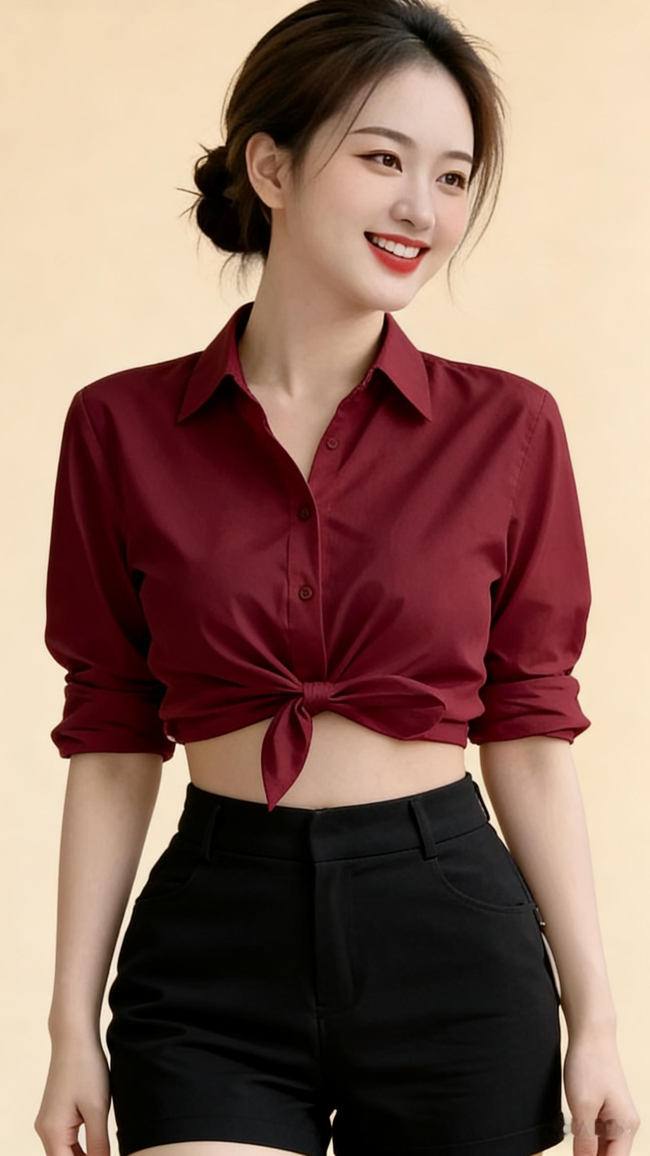 夏日清新,红衬衫+高腰短裤,简单搭配也能打满分。美!