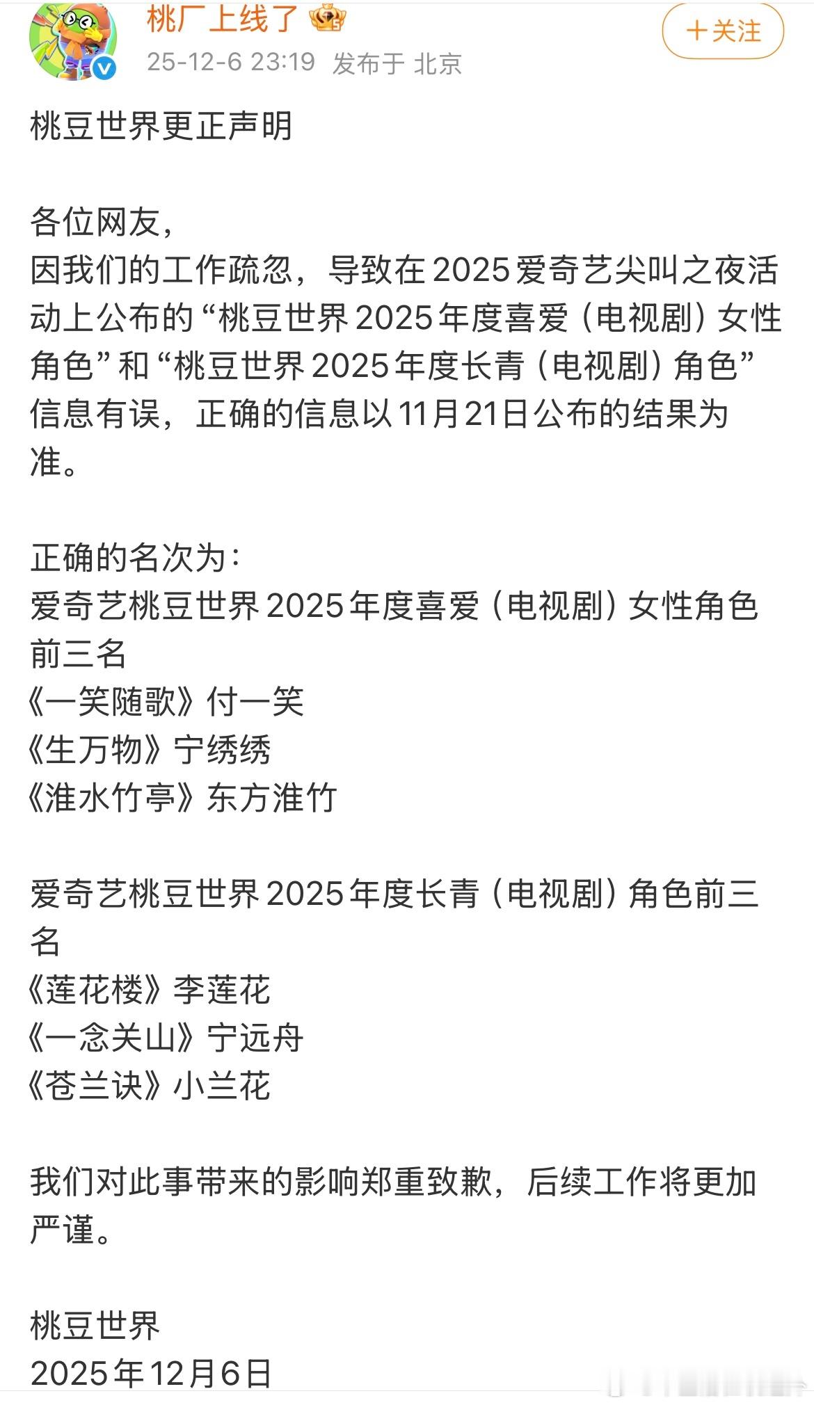 爱奇艺道歉 应该就是粉丝投出来后,得的人没去,所以就顺水推舟给了去的人。据说这些都是要花钱投的,还是觉得粉丝都是上赶着去给钱,所以根本无所谓。没想到还闹起来了,于是只能改回来。本身就是毫无意义的平台自定义名头,但你收钱了,起码尊重下钱。