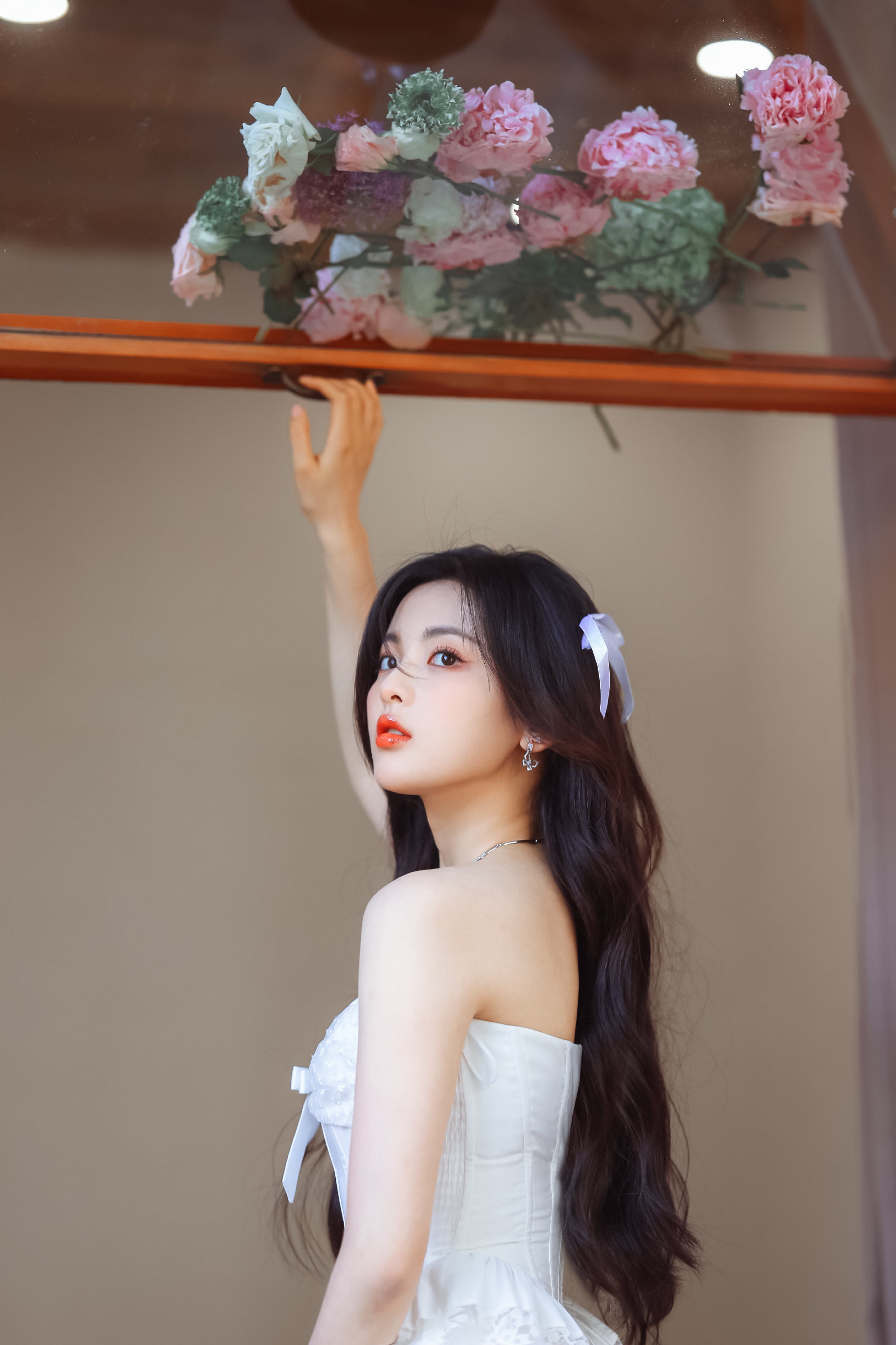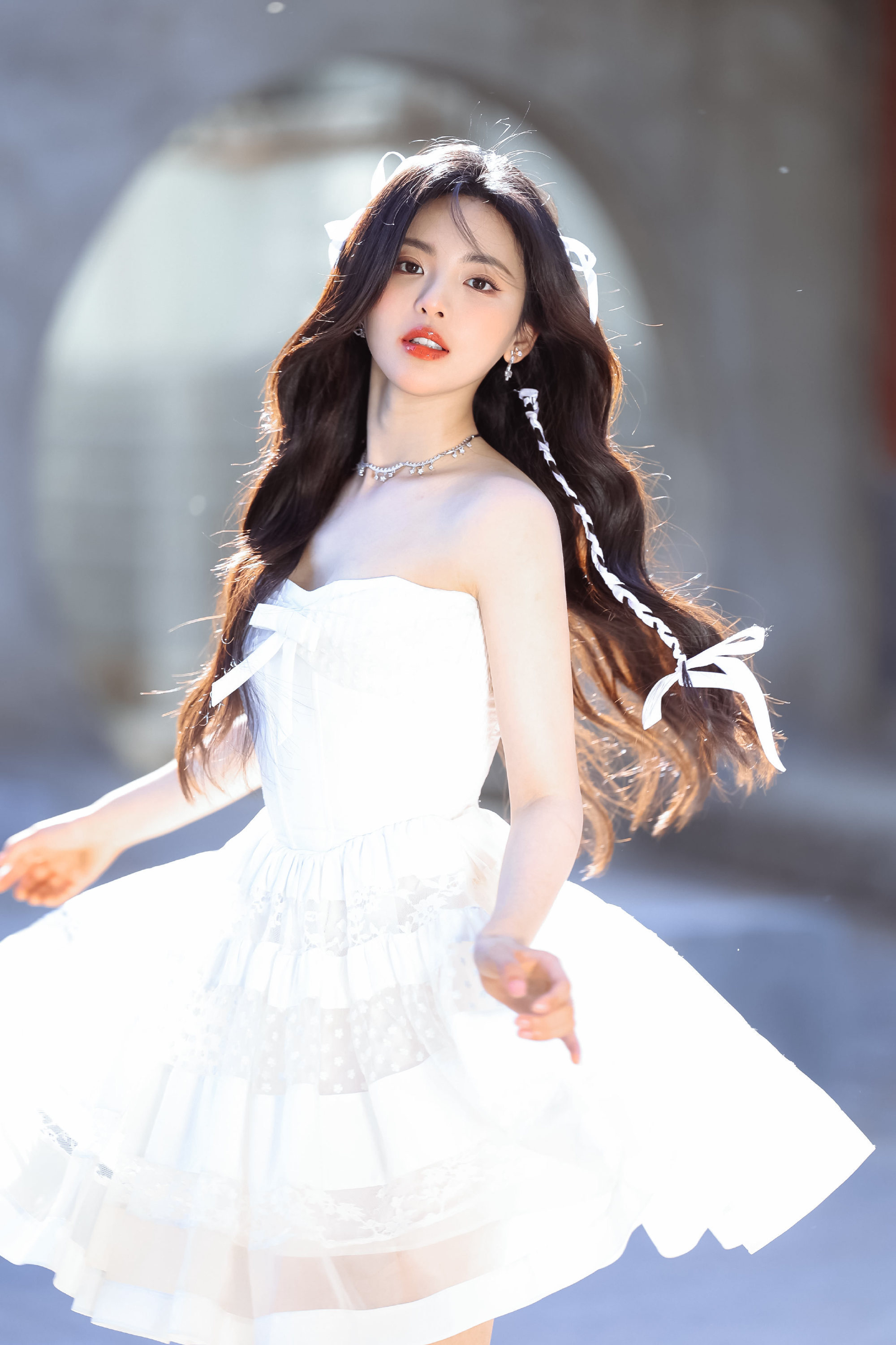 杨超越,白裙少女,肤白貌美,青春可人。杨超越 全网热点共创计划