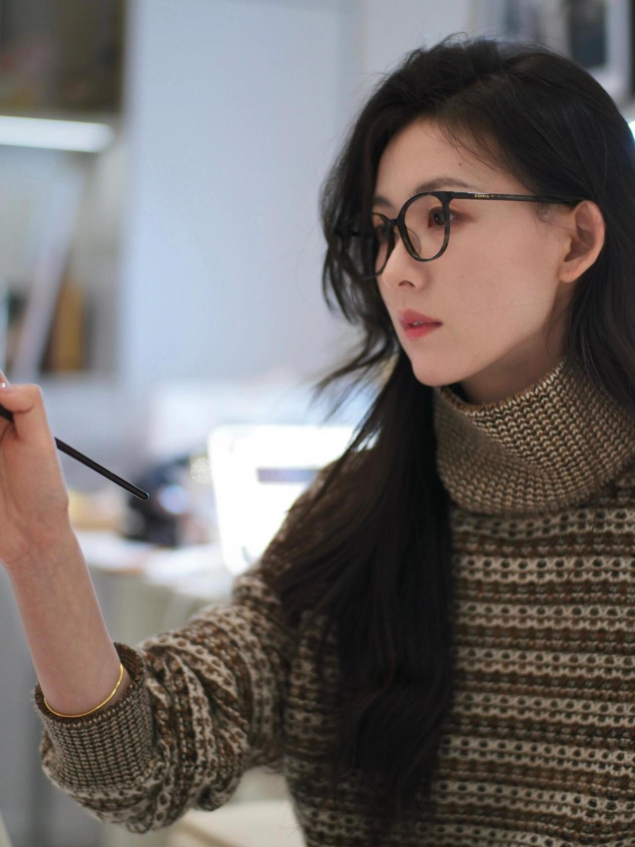 鹧鸪天·执笔闲章 软织堆云覆颈长,墨框轻拢半窗光。 笔锋漫捻思千缕,鬓影微垂意未央。 素室无风尘事远,指尖有韵纸痕香。 松纹织就秋成色,倦把青丝绾作霜。 抬眸偷向镜中望,一襟温柔未肯藏。 不借丹青描俗世,只将心绪入毫芒。 寻常烟火皆入画,方寸之间, 把流年捻成细浪, 岁岁安然,笔底生香。 何须寻路向远方,此间自有清宁场。