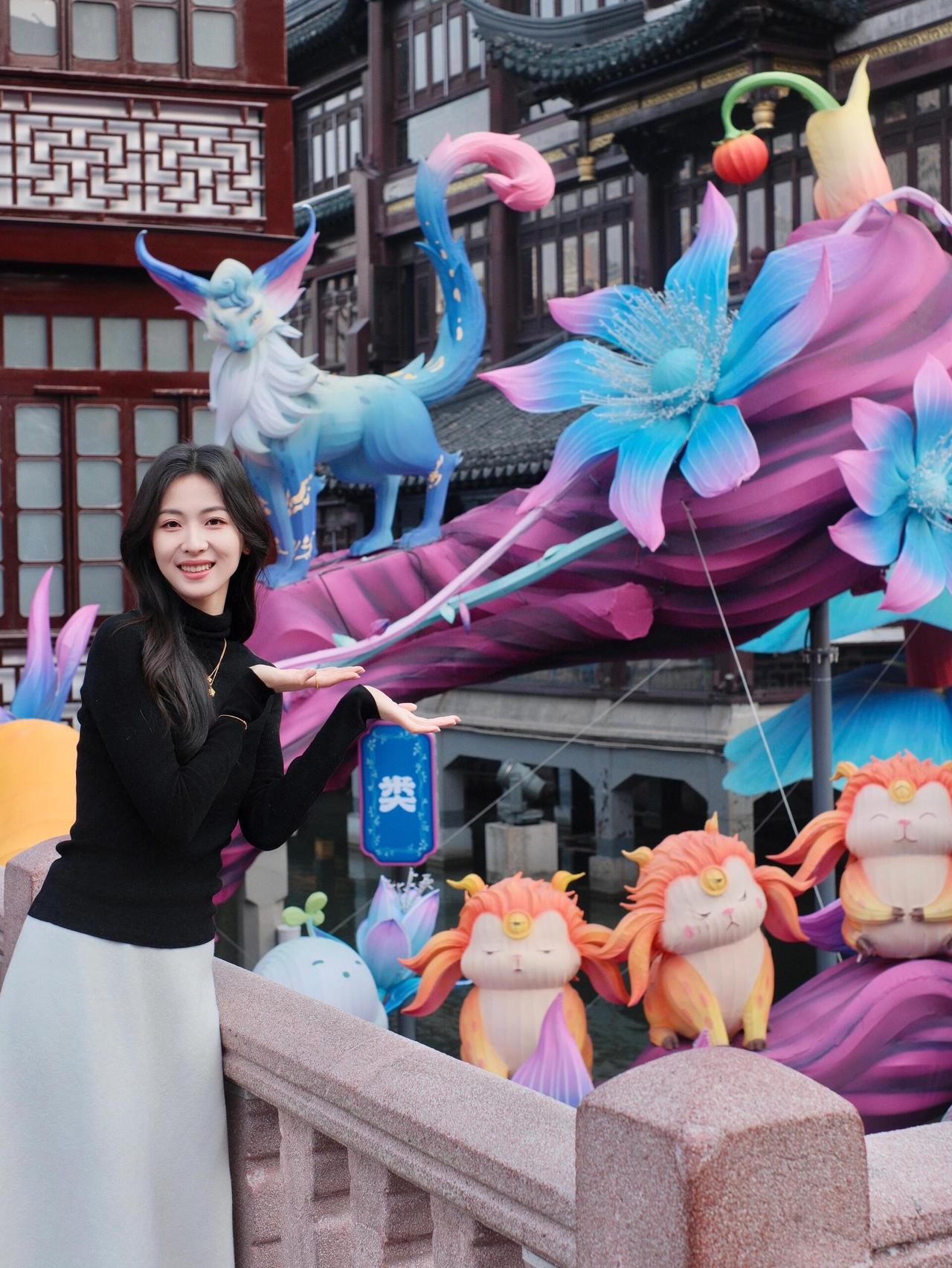 临江仙·岁序添红 金饰轻垂衫影黑,眸光漫过璃窗。 指尖轻捻岁时香,鬓边星子,偷落几分光。 红纸裁风添吉语,灯笼摇暖街巷。 豫园风物入眉长,彩光缠树,灵趣绕回廊。 不必寻春春已至,一襟温柔向阳。 寻常烟火裹新章,腕间金缕,心上暖阳, 把人间清喜,都妥帖收藏。 巷陌熙攘,年味漫春江, 抬手拂过花灯影, 岁岁安然,步步生香。