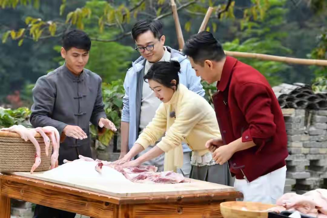 央视《三餐四季》剧组真的来赣州了!何岩柯带着郭采洁、曹雨闪现古浮桥,网友偶遇直呼:“看到顾里本人了!” 镜头外更有趣——三位明星居然围着一盆鸭子做“SPA”,郭采洁尝了一口当地菜眼睛都亮了,连说“是小时候的味道!”赣南脐橙也成功抢镜,被她当场点赞。 在卫府里市场,他们挤在摊位前学做客家菜,何岩柯颠勺的样子像极了美食博主。这趟拍摄简直成了赣州美食的“夸夸团”,隔着屏幕都闻到香味了! 据说节目要深挖赣菜故事,这下可不止是舌尖之旅了。等着看正片里,郭采洁的“顾里式点评”会不会重现江湖?
