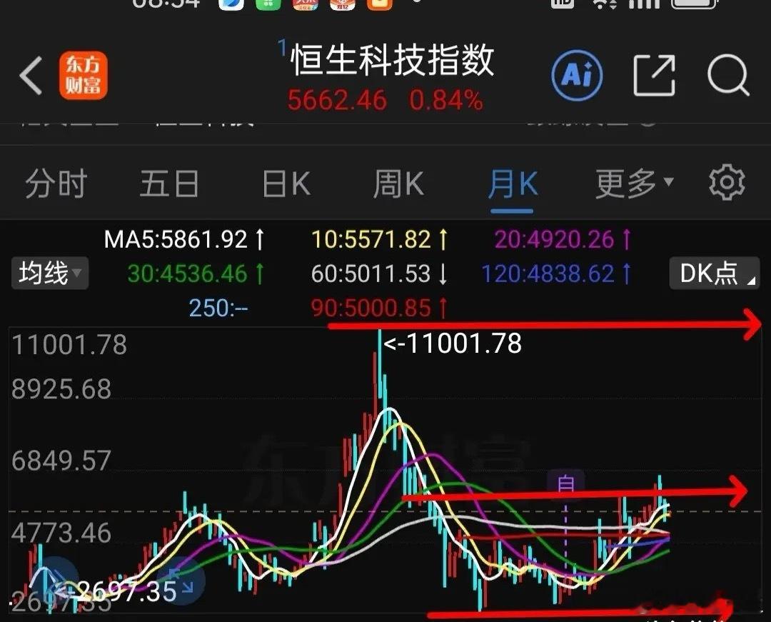 周末聊基金,再谈恒生科技如何操作? 恒生科技自2025年以来,到今年10月高点6715点,它已经上涨了超50%,然后从高点开始回调,到11月21日低点5361点,已经下跌了20%,实际上它是在年线支撑位止跌企稳的。 目前恒生科技处于什么位置?日线、月线走势如下图所示,从日线来看,它仍然在长期上升趋势线上方运行。从月线走势来看,它处于历史高点中间位置。 接下来如何操作恒生科技?长期看涨没有疑问,这个长期最低要看半年或者一年以上。2025年它已经上涨了50%,按指数来说已经上涨不算小啦,假如你从年初买入持有到现在不动,收益率会超过许多板块及投资人。 今年剩下的交易时间不多了,再想它大幅上涨不可能,年前就是震荡整理筑底行情,为明年上涨打下基础,腾出空间,不排除再次回踩下方年线支撑,假如它再从年线起涨50%(5300点附近甚至更低),那明年指数就要超过8000点。 操作策略,做长线的,目前可以分期慢慢低吸布局来年行情,不要频繁加仓,不要大幅进入,防止突发事件下探。做短线的,春节前后这段时间只能高抛低吸做波段。 以上观点仅供参考不构成投资依据,点赞转发关注投资理财不迷路。