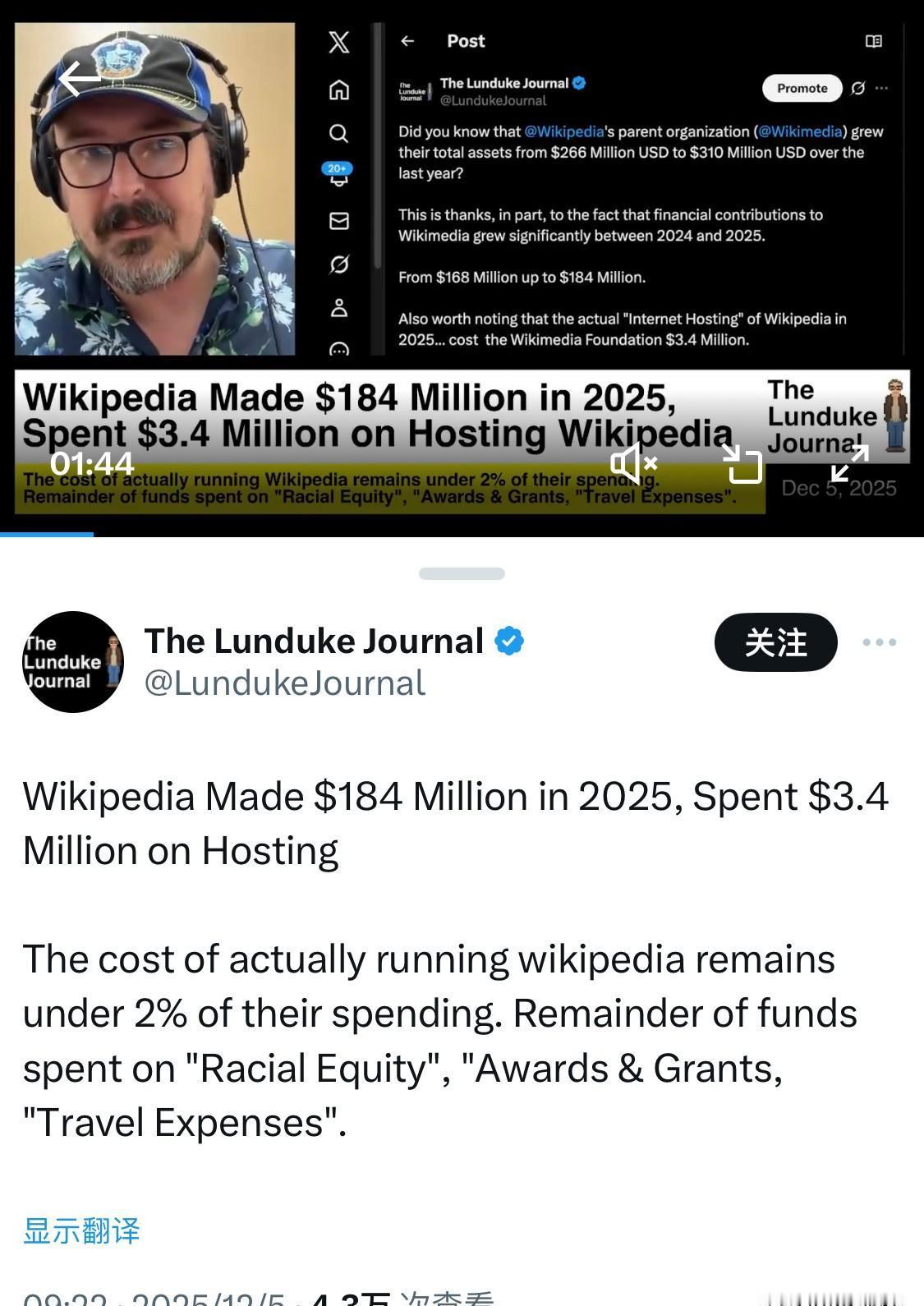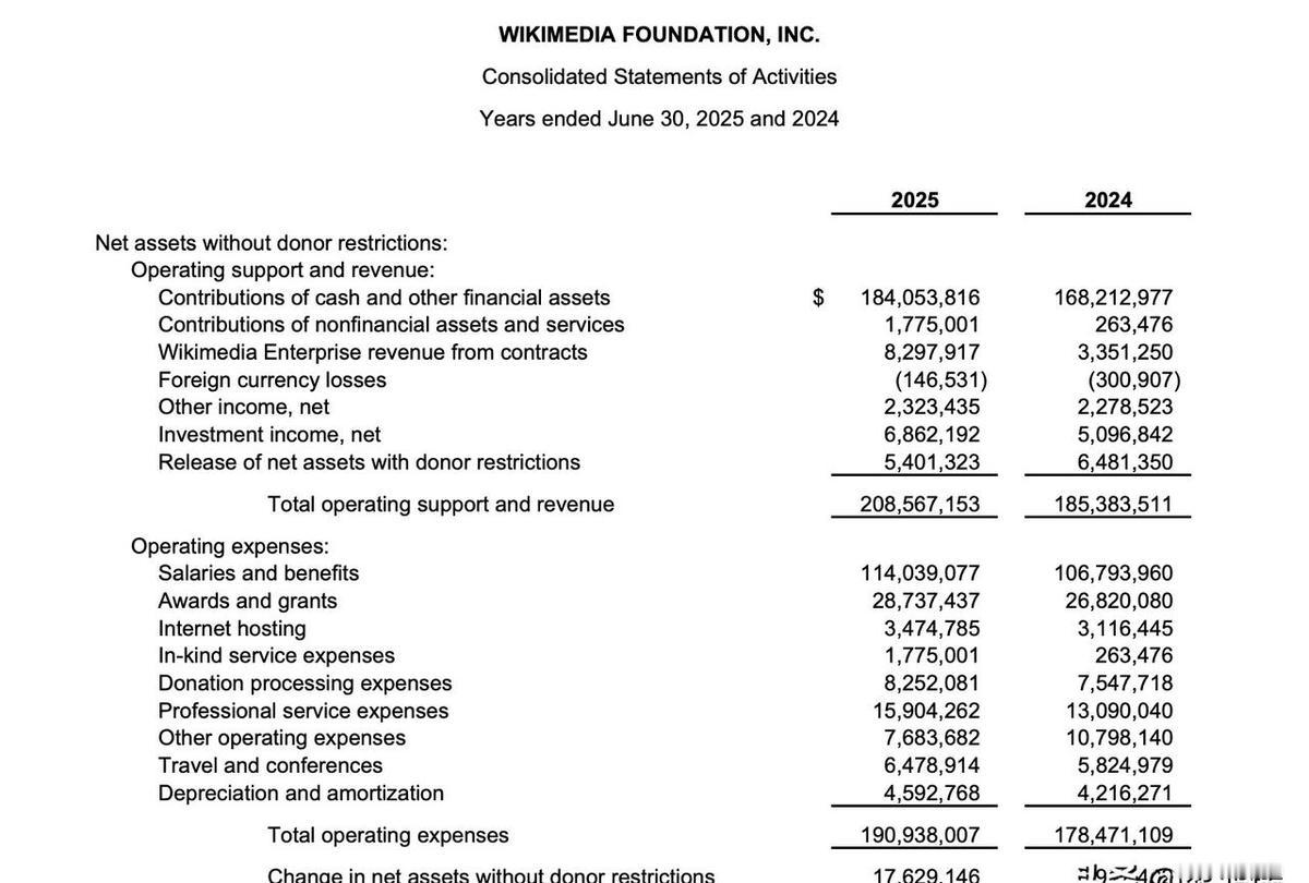 维基百科这波操作属实让人看不懂,一年哭穷喊着要捐款收了1.84亿美元,结果真正用来修网站服务器的钱才340万? 连个零头都不到,剩下的巨款到底去哪了? 咱圈内人拿到最新的财报数据都惊了,作为全球流量前几的网站,技术维护费竟然占比不到2%。 原来大家一人十块凑出来的“救命钱”,大头都花在了所谓的种族平等项目、国际差旅和各种社区奖励上。 这哪是单纯搞百科全书啊,简直是搞大型慈善社交的节奏。 其实这也不是第一回了,扒一下前两年的老底,那时候“知识平等”项目的支出就暴涨了15%,官方说是为了扶持发展中国家语言版本,但这钱花得是不是有点太“虚”了? 最让人心疼的还是那一帮子“用爱发电”的志愿者,全球30万人,中文区也就5000多个活跃的大佬,没日没夜地修词条、防破坏,一分钱工资没有。 结果基金会拿着上亿美金搞“2030战略”,干活的人还得自备干粮,这反差感是不是有点太强了? 说到底,坚持不打广告纯靠捐赠,为了保证内容中立,这点咱得瑞思拜。 但看着这日活15亿的庞然大物,钱花得越来越让人摸不着头脑,下次网页弹窗让你捐款买杯咖啡的时候,这钱你还愿意掏吗?