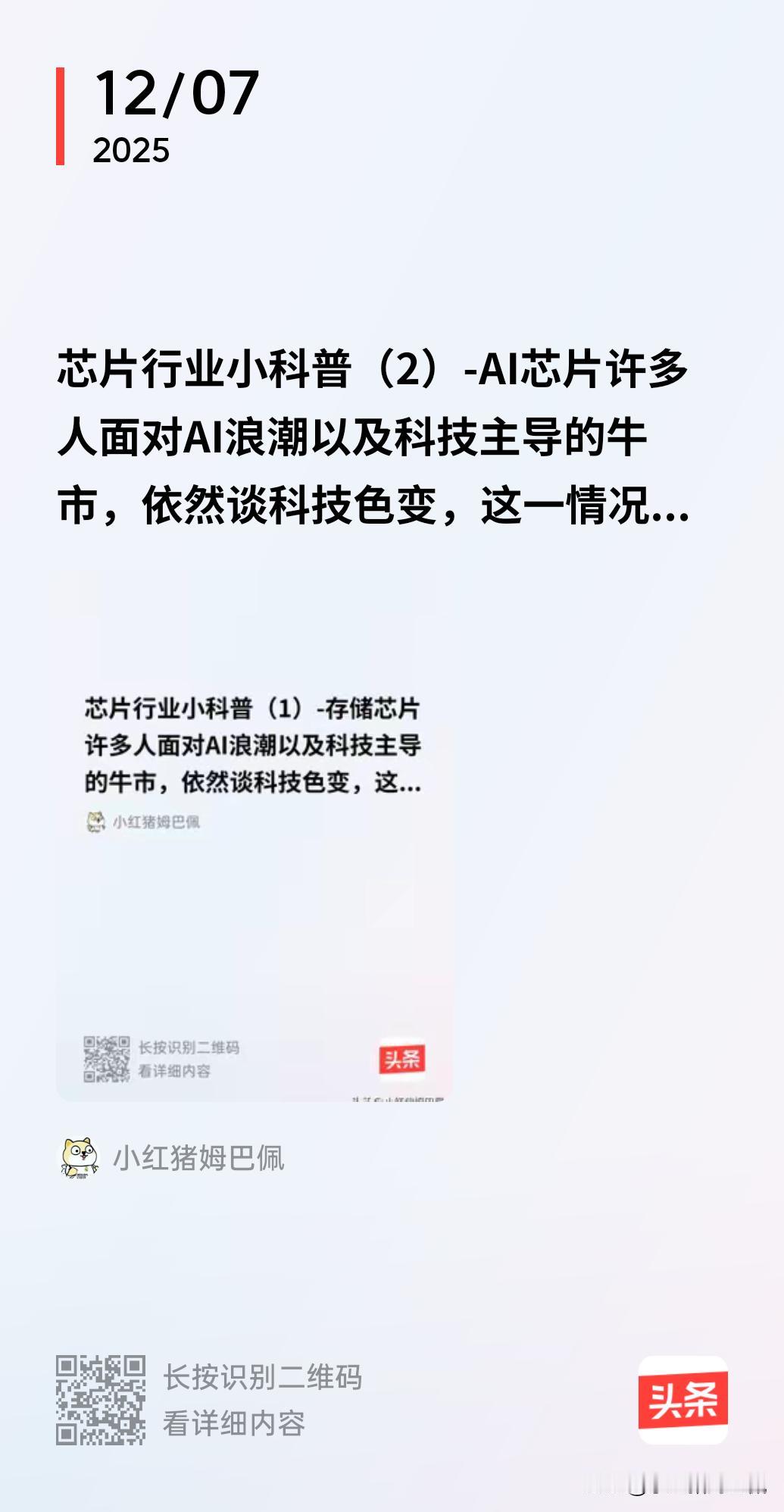 芯片行业小科普(3)-CPU芯片 许多人面对AI浪潮以及科技主导的牛市,依然谈科技色变,这一情况主要源于自身对于行业的不了解,为了帮助大家更好地投资,我来做些小科普。当然限于微头条篇幅有限,仅仅是入门级的小科普,深入的可能陆续会再讲。 比起AI芯片,大家可能更熟悉CPU芯片,作为计算机系统的“大脑”,承担指令获取、译码、执行与任务调度等核心功能,其性能直接影响系统整体表现。目前主流技术架构分为x86、ARM与RISC-V三大类:x86架构以高性能和成熟生态著称,广泛应用于PC和服务器市场,代表企业包括Intel、AMD、海光信息和兆芯;ARM采用精简指令集,具备高能效比优势,主导手机、平板及部分服务器领域,苹果、高通、MTK、海思、紫光展锐均为重要参与者;RISC-V作为开源指令集架构,具有灵活设计与无授权费优势,在物联网、AI边缘计算等领域迅速崛起。 CPU芯片和AI芯片最大的区别在于架构设计和计算方式。CPU采用通用架构设计,拥有少量强大而复杂的计算核心,擅长处理逻辑判断和串行任务,适合各种常规计算工作。而AI芯片专为人工智能算法优化,拥有大量简单高效的计算单元,专为大规模并行计算(特别是矩阵运算)而设计,能同时处理海量数据。这种架构差异使AI芯片在执行深度学习等AI任务时,计算速度可比CPU快数十至数百倍,同时能耗显著降低。 国际市场上,Intel、AMD主导x86架构,而ARM架构被苹果、高通广泛采用。国内CPU产业正快速崛起,海光信息(688041.SH)通过授权方式开发x86架构CPU,已应用于国内服务器市场;龙芯中科(688047.SH)坚持自主指令集,推出LoongArch架构系列产品;华为鲲鹏基于ARM架构,构筑完整生态,阿里平头哥推出的倚天710芯片在云计算领域表现亮眼。