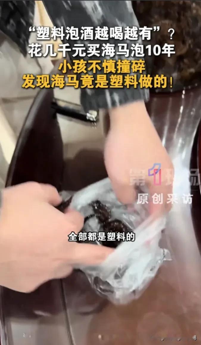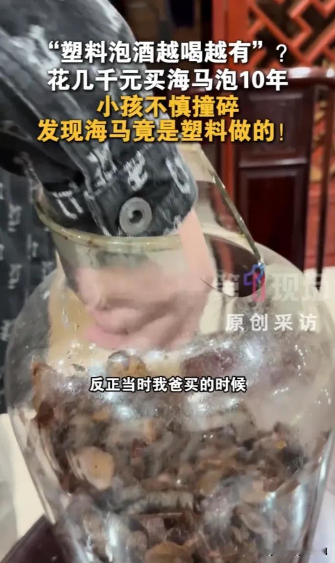 “迟来10年的真相!”广东梅州,孙子在爷爷家玩耍时,不小心打碎了爷爷泡了10年的海马酒。爷爷心疼的不行,儿子也赶紧上前查看,却发现地上的海马不对劲,捡起来一看竟然都是塑料的。这才意识到,老爸十多年来喝的一直是用塑料泡的酒! 刚好是星期天,男子带儿子回家去看爷爷,大人在院子里聊天,孙子在屋里跑来跑去的玩耍。只听“嘭”的一声屋里传来玻璃破碎的声音,外面聊天的父子两个吓了一跳,赶紧进屋查看。就看到孙子吓得站在一边不知所措,空气中传来阵阵酒香,而地上都是碎玻璃还有散落开来的海马和各种药材! 爷爷看到这一幕顿时心疼的不行,“哎呀我的海马酒”,赶紧上前去查看,想发脾气,看到孙子吓得快哭的表情又舍不得。只能赶紧蹲下去颤着手去捡地上的海马!这可是他花了大几千买的海马,这坛酒可是他的宝贝啊,泡了10年了,一直都舍不得喝,只是偶尔馋了才会倒出来一小口解解馋,逢人都会炫耀自己这坛子好酒,可把老友们馋坏了。这下子全没了,他能不心疼吗。 儿子也赶紧帮父亲去收拾,可当他捡起海马就感觉不对劲,那还拿硬邦邦的很像塑料的,为了验证自己心中所想,他从兜里拿出打火机烧了一下,果然就是塑料的! 爷爷看到这一幕也是懵了,难道自己宝贝了10多年的海马酒都是塑料的?他不愿意相信,但看着儿子手里明显就是塑料的海马,他也不得不信了!原来自己被骗了,但是这卖他海马的人也找不到了,他这是在流动摊位上买的,当时有人来村里推销,说的很神奇,说对老人身体好,他就买了,他自己也不认识,我不知道真假! 要不是孙子不小心打破了,儿子发现,他都不知道。 儿子也很生气,也很庆幸,还好父亲不舍得喝所以就没喝多少,不然喝了塑料泡的酒还不知道对身体有啥害处! 这也算是“塞翁失马焉知非福”了,这个不仅不能骂孙子,还的感谢孙子救了你! 当然最可恶的还是卖老人海马的人,现在很多人就是抓住村里年轻人都不在家,老人又不懂这一点,以次充好来到农村欺 骗大爷大妈们,吹的功效多好多好,然后再说的多便宜多少便宜,大爷大妈们就以为捡了便宜,赶紧花钱去买,结果就被骗了! 你要说用差一点的也就算了,这用塑料的可就过分了,不仅不能强身健体还会伤害身体,这就可恶了! 现在年底了,年轻人要交代好自己家的老人不要啥热闹都去凑,避免被忽悠的买东西了! (信息来源:第一现场,侵删[祈祷])