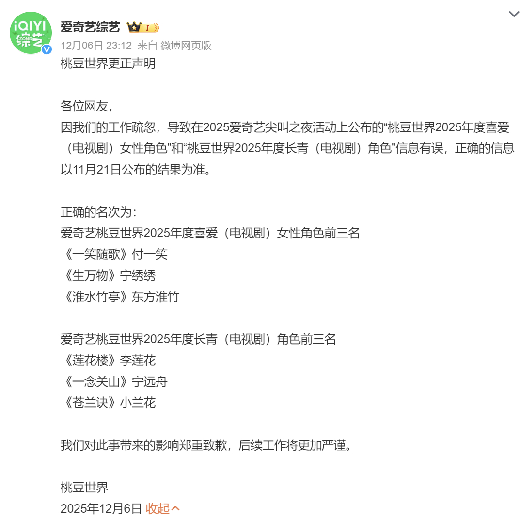 爱奇艺道歉 爱奇艺现在真的是会员体系无节操,搞个活动也不负责任。这可是付费投票机制,每一票都是粉丝真金白银投出来的,就这么一个道歉就完了???
