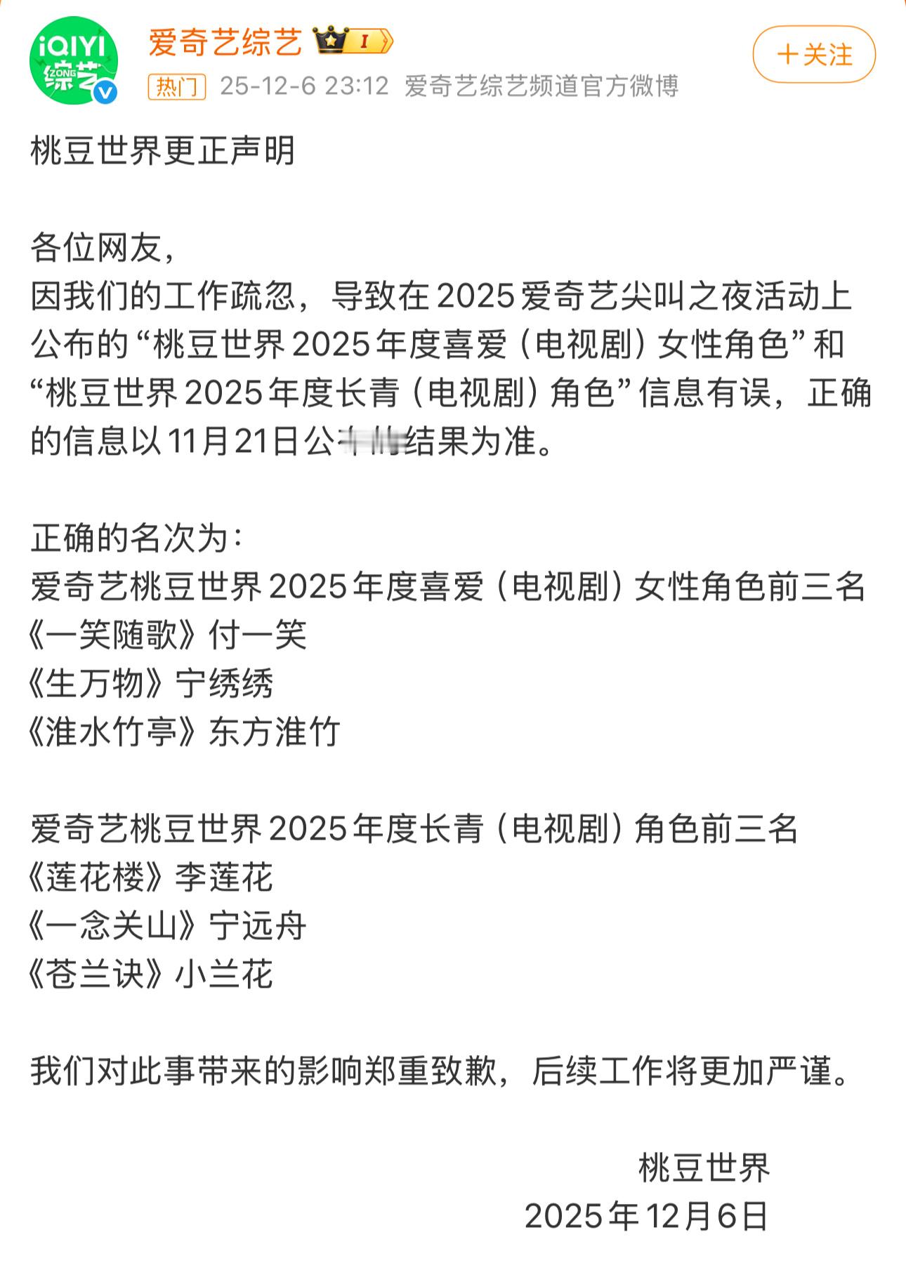 爱奇艺这波操作真狗,道个歉就完事了?粉丝可是真金白银花钱投票的,结果说改就改,至少得把票钱退了啊!爱奇艺道歉