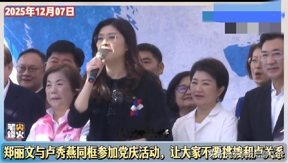 卢秀燕这回总算想通啦!今天开开心心跟郑丽文合影开报告会,场面挺热闹。 郑丽文难得跑到台中和卢秀燕合体,江启臣、杨琼樱还分站两边——江启臣挨着卢秀燕,杨琼樱靠著郑丽文,阵型摆得明明白白。 卢秀燕这转变,既是郑丽文的大胜利,说白了也是她要冲2028的信号啊!想参选就得往郑丽文身边靠,有党主席撑腰,党内出线才更有戏。 以前卢秀燕思想多保守啊,压根不认同郑丽文那套,但现在这形势摆这了——没郑丽文在前面开路搭桥,她就算想选2028,那也是难上加难。 她俩合体,总算给国民党团结开了个好头!之前卢秀燕故意避着郑丽文,被大家吐槽惨了,这回主动凑一起,心里多半是认了这位郑主席吧?
