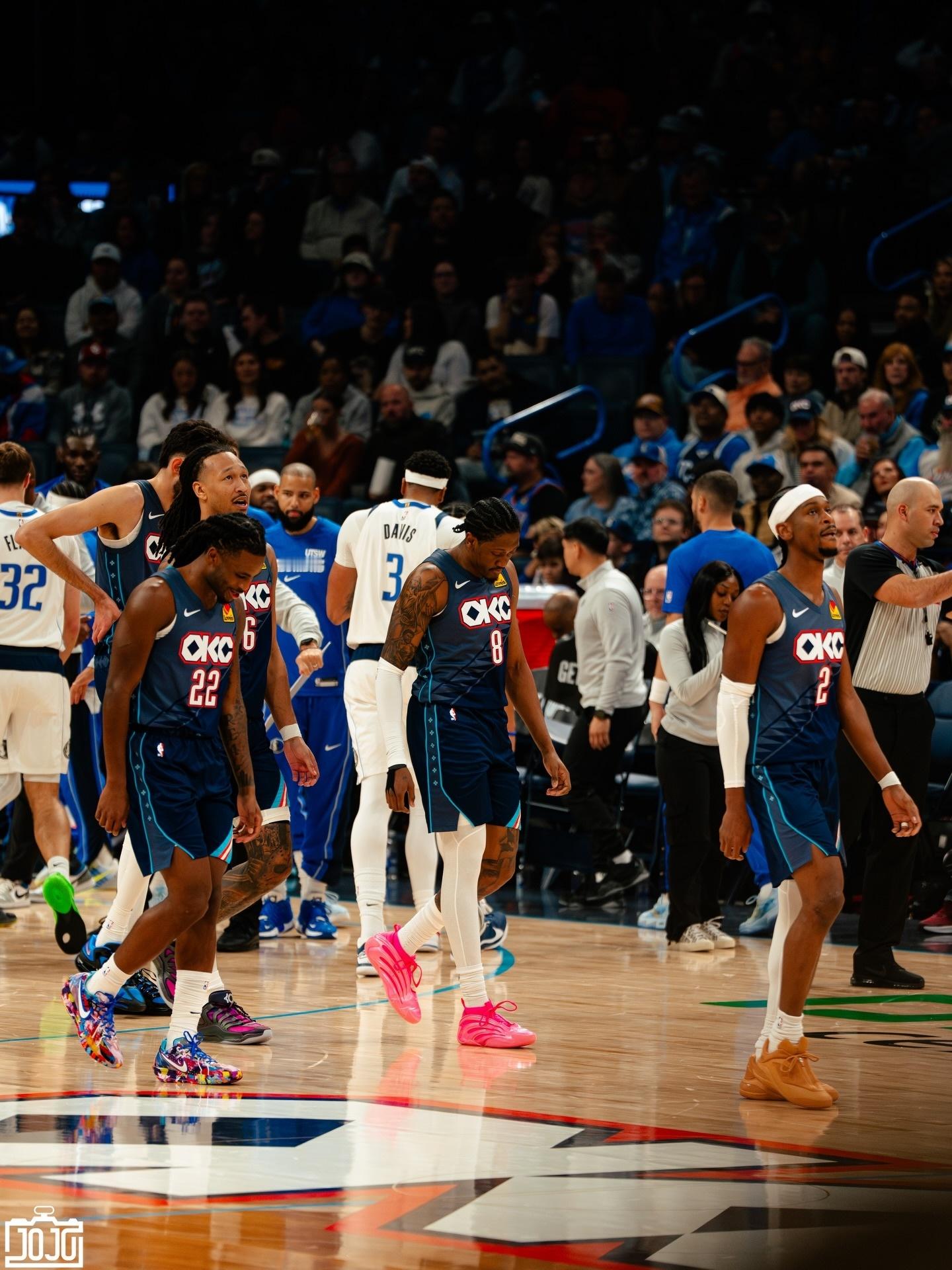 Jojo晒雷霆vs独行侠的返图并配文:三节战罢,雷霆球迷们感觉如何?雷霆战胜独行侠雷霆14连胜雷霆