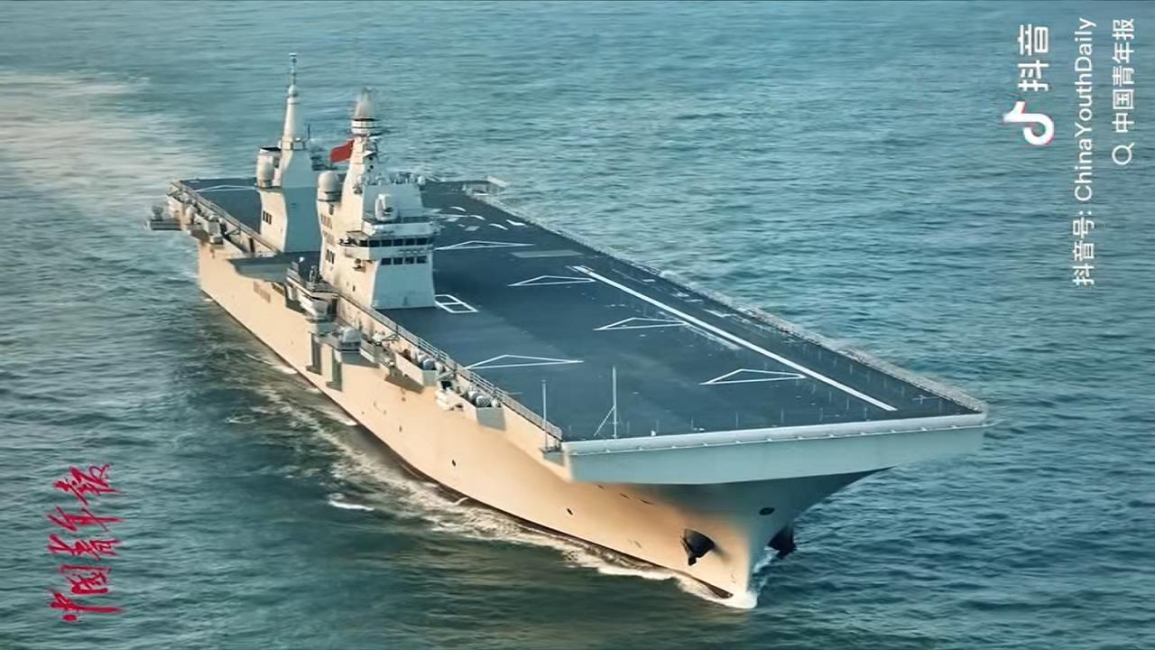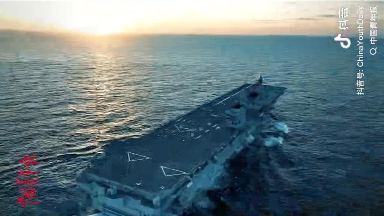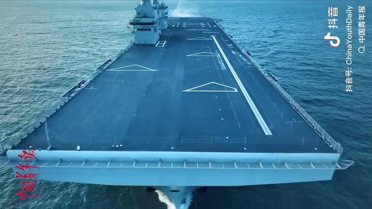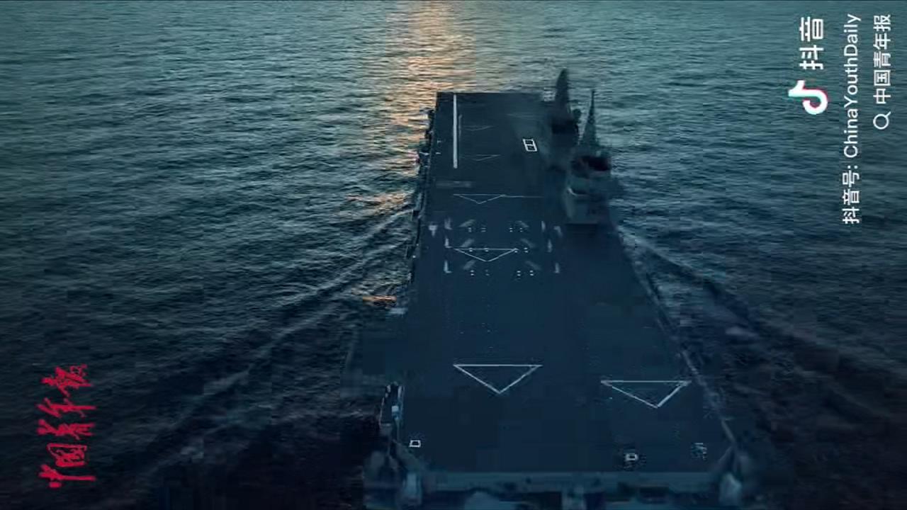 转发中国青年报视频,076首舰四川舰海试绝美视频截图,平板航母就是帅,虽然没有福建舰甲板那么大,但是平平整整的,在海上航行看上去就是帅!期待早日服役,攻击二十一早日上舰,海教十早日上舰。