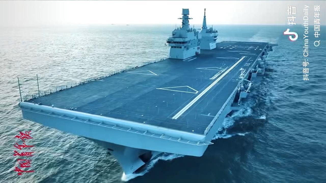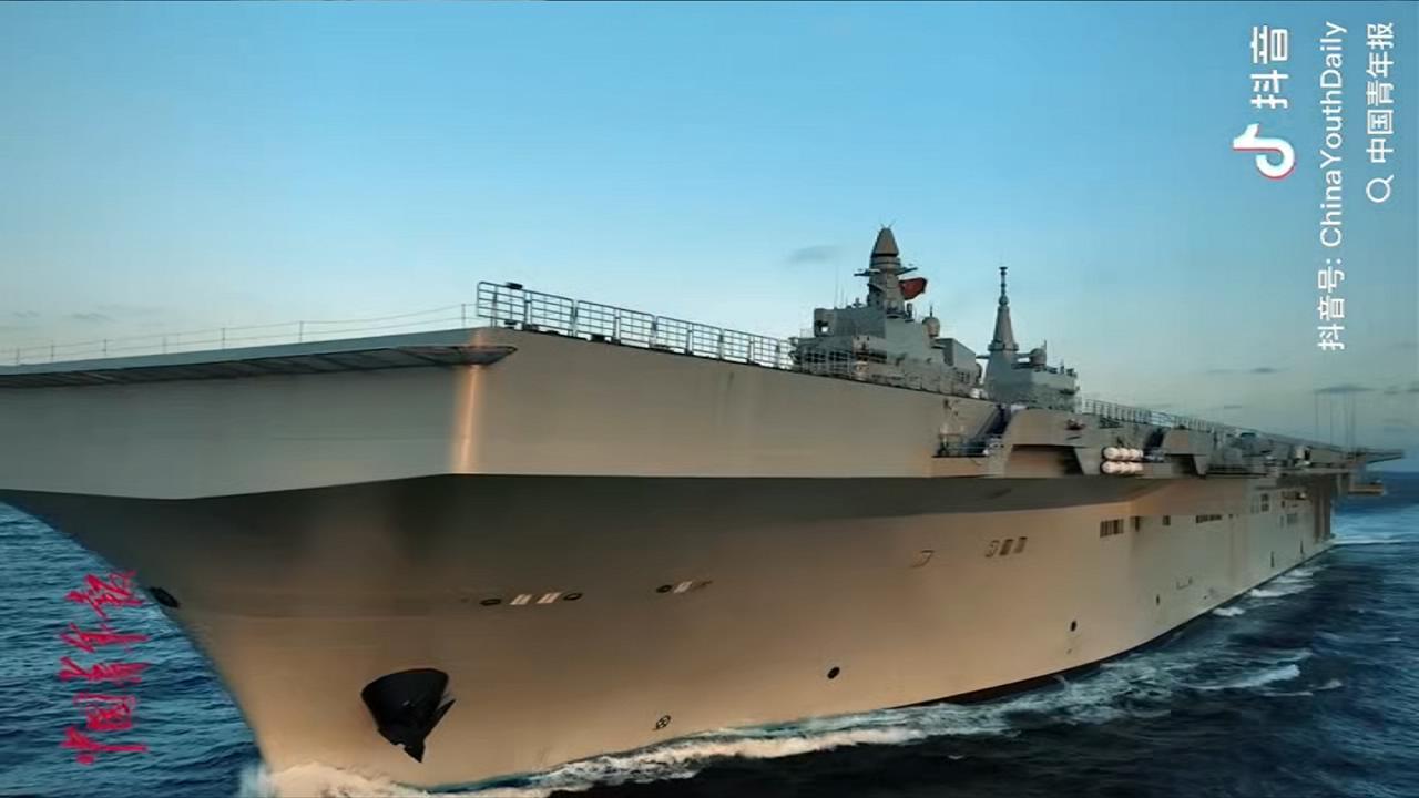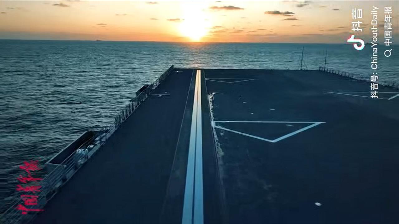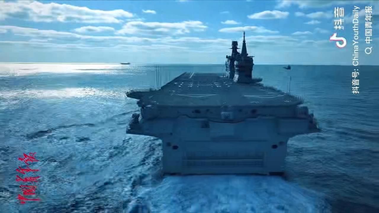 转发中国青年报视频,076首舰四川舰海试绝美视频截图,平板航母就是帅,虽然没有福建舰甲板那么大,但是平平整整的,在海上航行看上去就是帅!期待早日服役,攻击二十一早日上舰,海教十早日上舰。