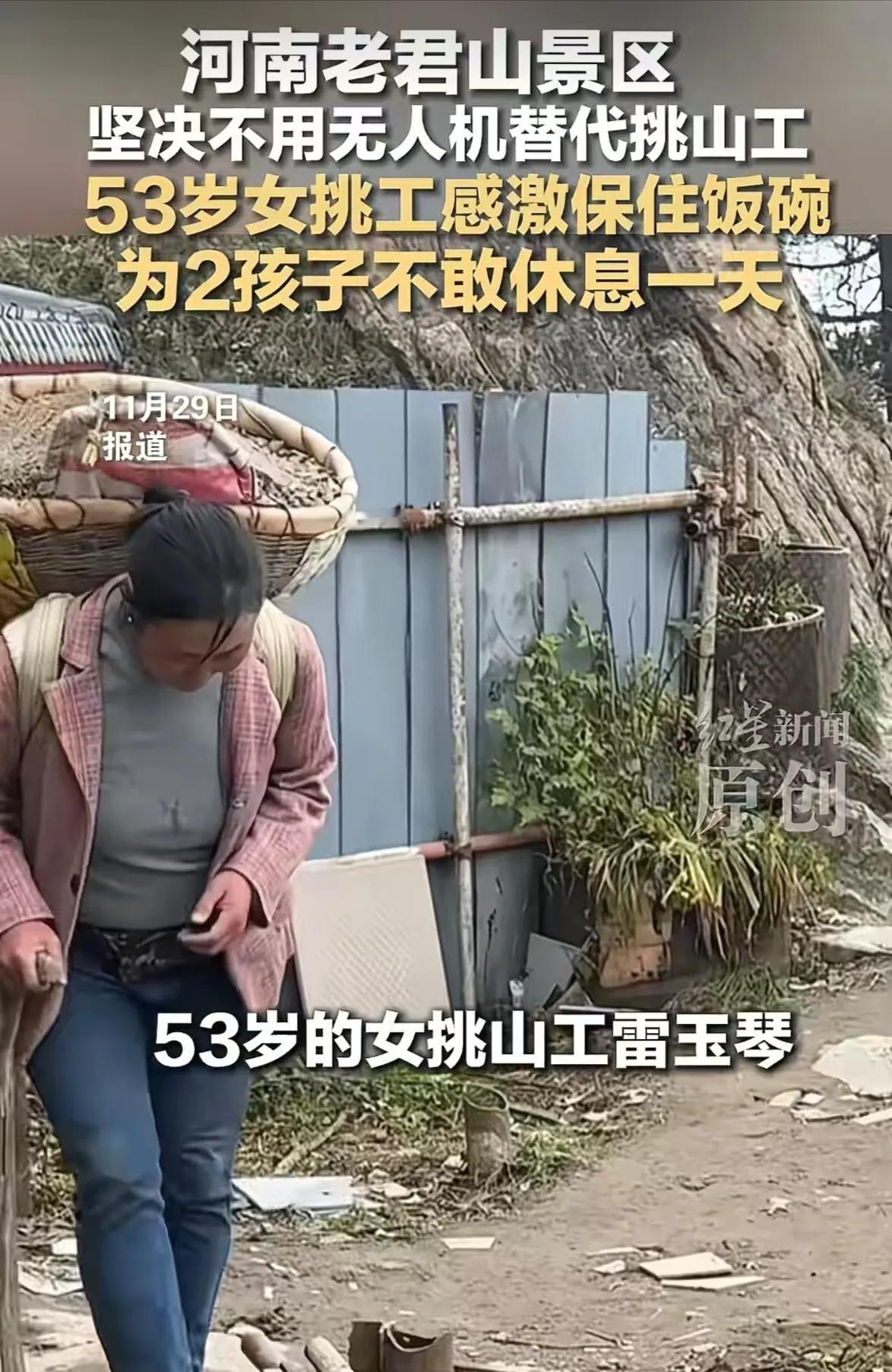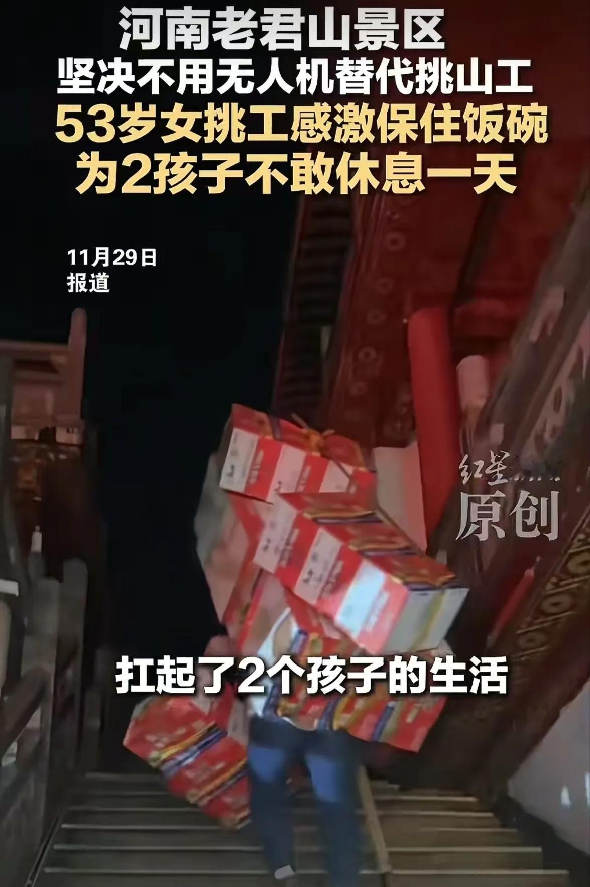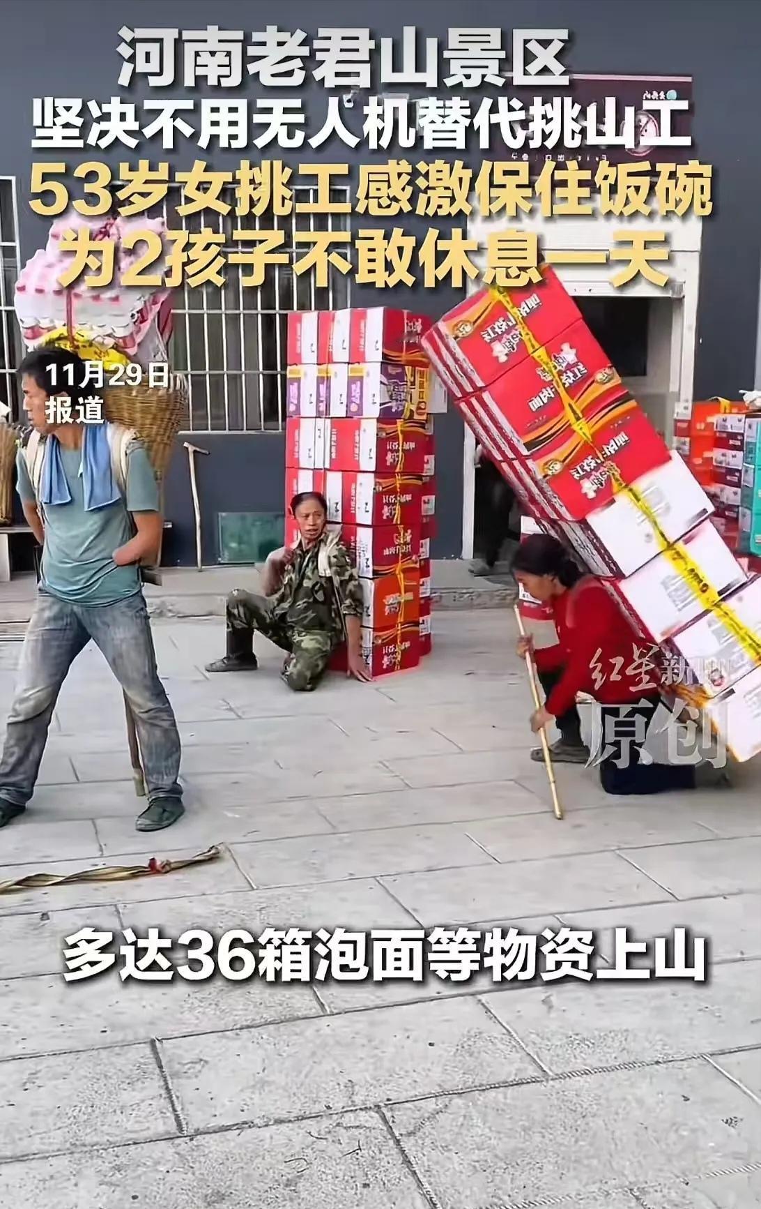 吵翻了!老君山拒用无人机替挑山工引热议,是暖心守护还是顽固守旧? 河南老君山最近彻底火上热搜,不是因为绝美风光,而是一场关于科技与民生的激烈争论,网友吵得不可开交! 不少游客去老君山游玩时,看到挑山工们背着沉甸甸的货物,在陡峭山路上艰难攀爬,每一步都满是汗水,看着格外心疼。大家忍不住发问:现在科技这么发达,景区明明有无人机、机器狗,为啥不用来运货,非要让工人遭这份罪? 面对质疑,景区的回应特别实在:无人机、机器狗早就配齐了,不是用不了,而是真不敢用!就怕一换设备,这群挑山工的饭碗就没了。 这群挑山工里,大多都是坚守几十年的老员工,一辈子靠双肩挑货谋生。53岁的雷玉琴,曾是山上唯一的女挑山工,3.5公里的山路、1800多级台阶,她背着上百斤的货物(光泡面就有36箱),一走就是11年,一天都不敢休息,全靠这份力气活扛起两个孩子的生计。如今她还把侄女和妹妹都带来一起干,景区不仅给他们稳定收入,还免费提供住宿、能免费坐索道,这份保障对他们来说比啥都重要。 景区直言,挑山工才是老君山真正的灵魂,几十年的默默奉献,用汗水滋养着这座山,不能因为科技进步,就寒了劳动者的心,更不能断了他们的生路。 可这话一出,争议直接炸了锅,全网分成两大阵营吵翻了! 支持景区的网友清一色点赞:这才是有温度的景区!挑山工们年纪大、文化程度不高,除了挑货没别的技能,丢了这份工作根本找不到别的活,一家人的生计就断了。景区没只顾着追求效率省成本,反而优先考虑劳动者的难处,这份良心和担当太难得了,本来没计划去,现在果断改行程去老君山! 反对的网友却狠批:简直是没苦硬吃,太顽固守旧了!买了高科技设备放着吃灰,纯属浪费资源。科技发展的意义就是减少辛苦劳作,让大家少遭罪,按这逻辑,高铁飞机都别用了,恢复马车时代,还能保住车夫的工作,这不是倒退是什么?说白了就是不思进取,迟早会被淘汰! 从法律角度来说,景区作为经营主体,有权自主选择运输方式,只要不违反安全规定、不损害劳动者权益,用人工还是科技都合法。就算真要换成无人机,按《劳动合同法》,景区得给挑山工支付经济补偿,但补偿只是短期保障,他们年龄偏大、技能单一,再就业难度极大,后续生活还是没着落,景区保留岗位,其实是超出法律义务的人文关怀,守住了劳动者权益的底线。 也有人提议让挑山工学操作无人机、机器狗,可现实很残酷,他们大多年过四五十,学习能力和接受新事物的速度有限,短时间内根本学不会,强行转型只会让他们陷入“学不会、丢了旧活、没新活”的尴尬境地。 其实这场争论的核心,从来不是“用不用无人机”的小事,而是科技进步背景下,该不该抛下弱势群体的大事。科技发展是必然趋势,能提升效率、减少辛苦,但进步的代价不该是让底层劳动者失去生计。 效率固然重要,但民生温度更不该丢。你站哪一边?觉得老君山该用无人机替代挑山工吗?评论区聊聊你的看法~
