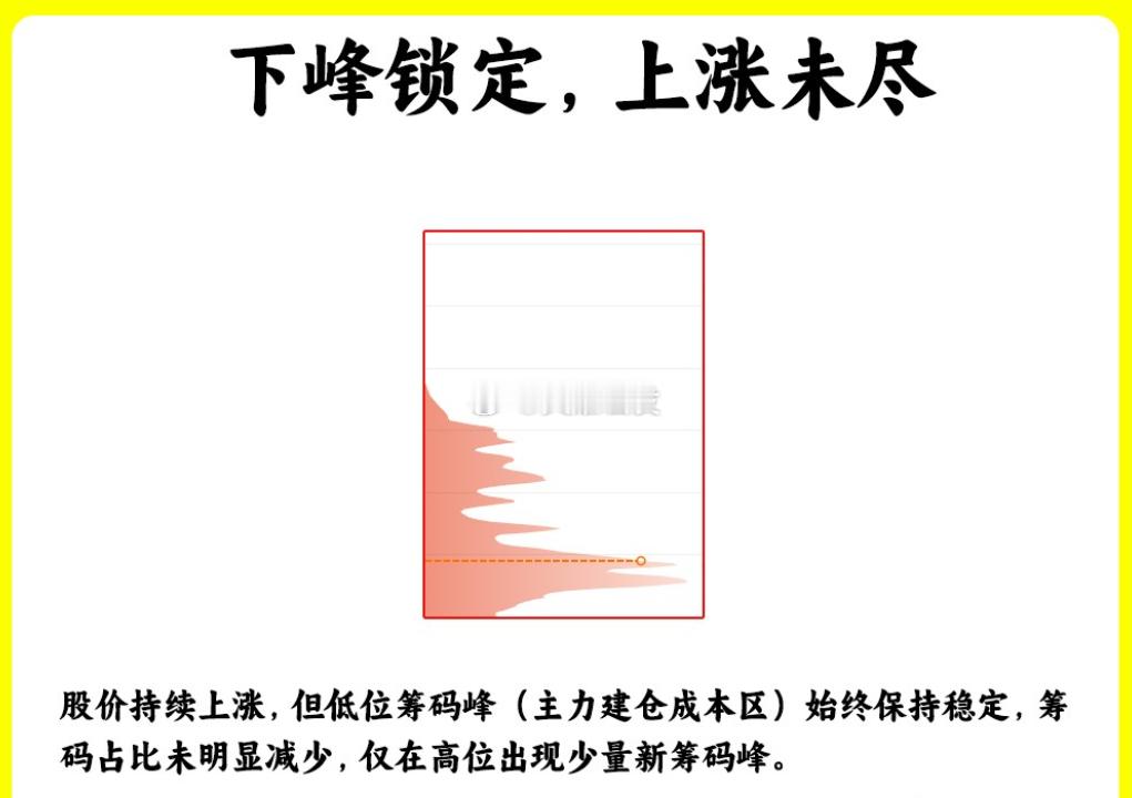 六种经典筹码峰形态,精准把握市场动向!新手看价格,老手看成交量,真正的高手则关注筹码峰!下面这六句口诀,浓缩了筹码峰的核心判断逻辑,帮你快速识别市场所处阶段,建议收藏反复琢磨。一、上峰不移,下跌不止股价在持续下跌过程中,若前期高位形成的密集筹码峰未见明显下移,说明上方套牢盘并未大量割肉,抛压尚未释放完毕。此种形态往往意味着下跌趋势仍将延续,不宜轻易抄底。二、单峰密集,主力参与股价在低位长期盘整后,筹码逐渐集中于某一狭窄价格区间,形成明显的孤立高峰。这通常意味着主力正在该区域持续吸筹,峰形越长、越密集,说明该价位筹码锁定性越强,后市一旦突破,上涨潜力较大。三、多峰林立,行情延续在明确的上涨趋势中,筹码分布图上出现多个依次抬升的密集峰,且峰间存在明显断层。这反映了股价在“拉升—洗盘—再拉升”的健康节奏中运行,尤其当底部筹码峰依然稳固时,表明主力未完全出货,上涨趋势有望持续。四、筹码上移,需要谨慎随着股价上涨,原本在低位形成的单峰密集筹码逐步向高位转移,并在高位形成新的密集峰。这说明低位获利盘正在了结,筹码由主力手中向散户分散,往往是上涨动能减弱、需警惕回调的信号。五、下峰锁定,上涨未尽在上升行情中,尽管股价已有一定涨幅,但底部主力建仓区域的筹码峰依然锁定不动,未见明显向上转移。这表明主力仍高度控盘,并未大规模派发,趋势有望延续,属于持股待涨阶段。六、双峰填谷,震荡整理股价在某个区间内上下震荡,筹码分布呈现“双峰夹一谷”形态:上方为套牢盘密集区,下方为获利盘密集区,中间谷底则筹码稀少。这种形态通常意味着多空双方处于僵持阶段,一旦筹码峰向中间“填谷”并最终合并为单峰,往往预示着方向性选择即将出现。记住,筹码峰反映的是不同价位上投资者的持仓成本分布,它能帮你更直观地判断支撑与压力、识别主力动向。市场始终在变化,结合其他技术工具与基本面分析,才能做出更稳健的决策。财经股票今日盘面分析