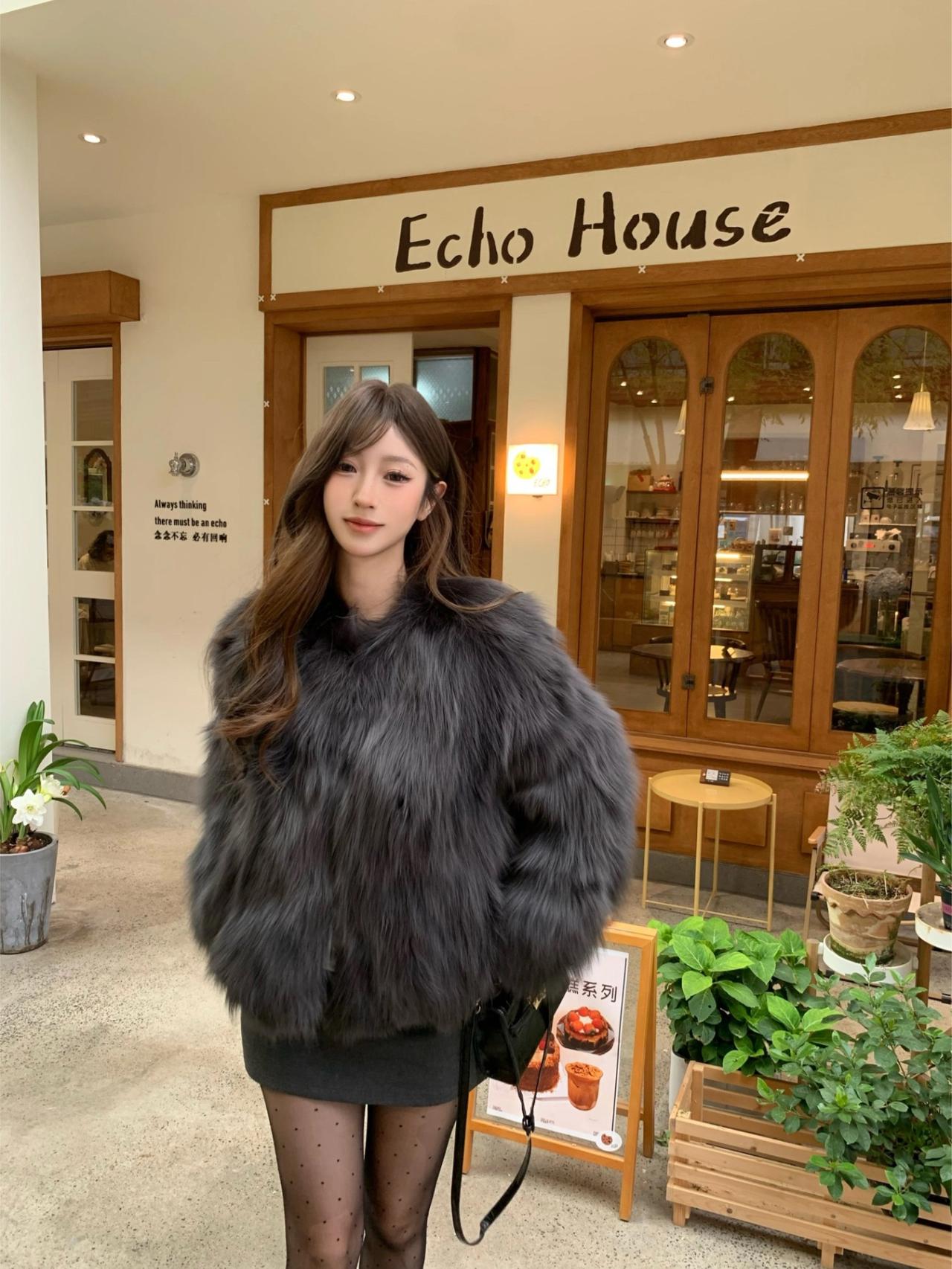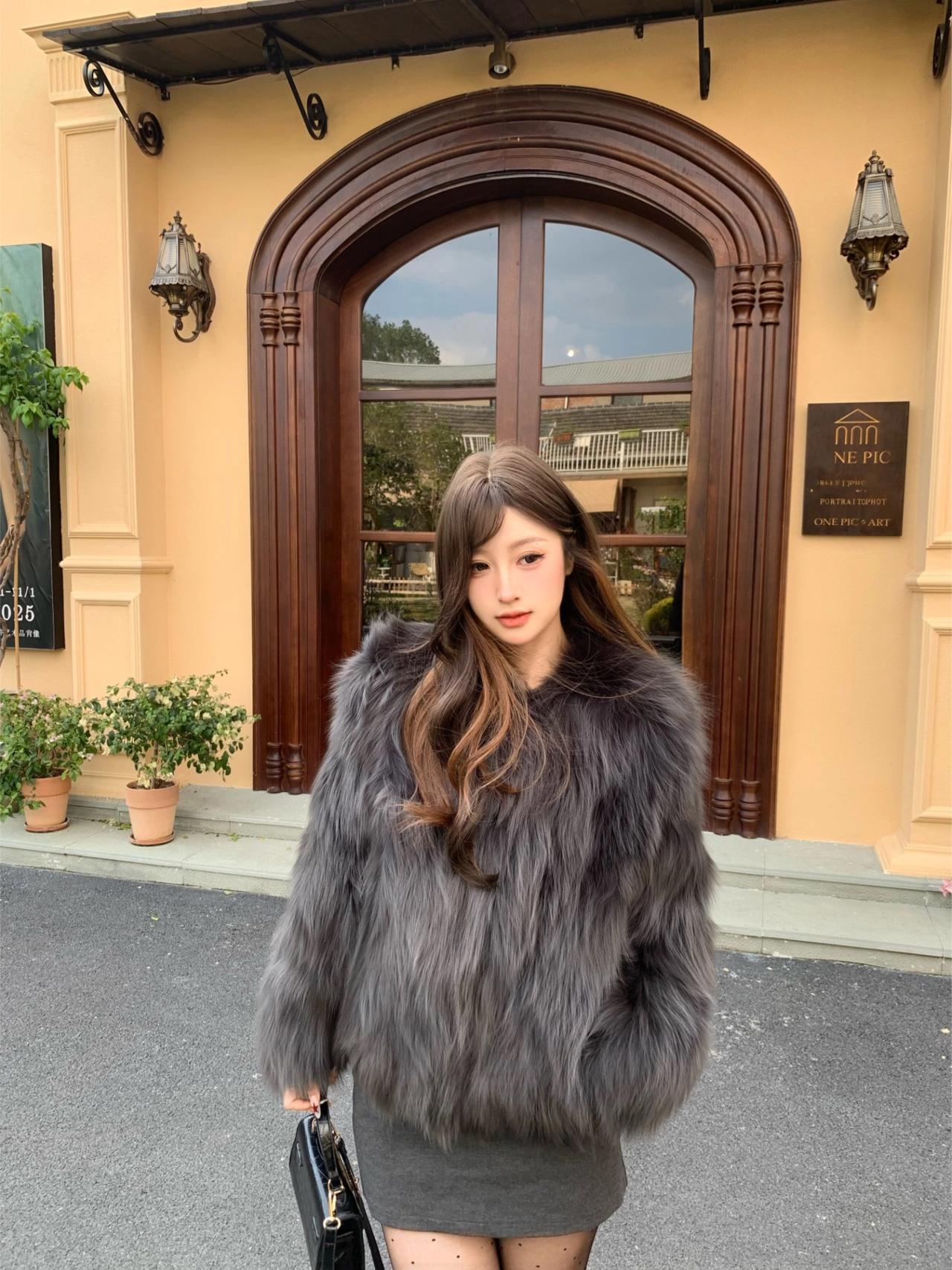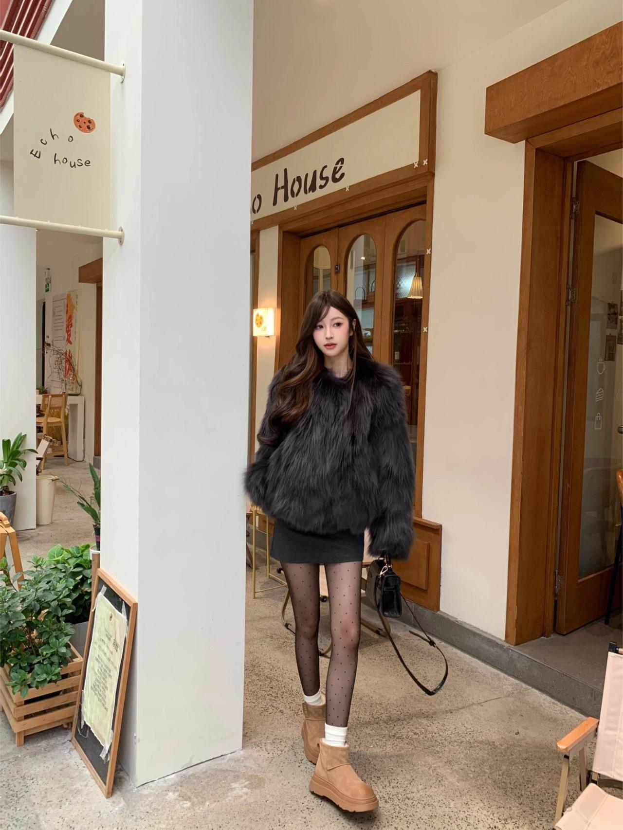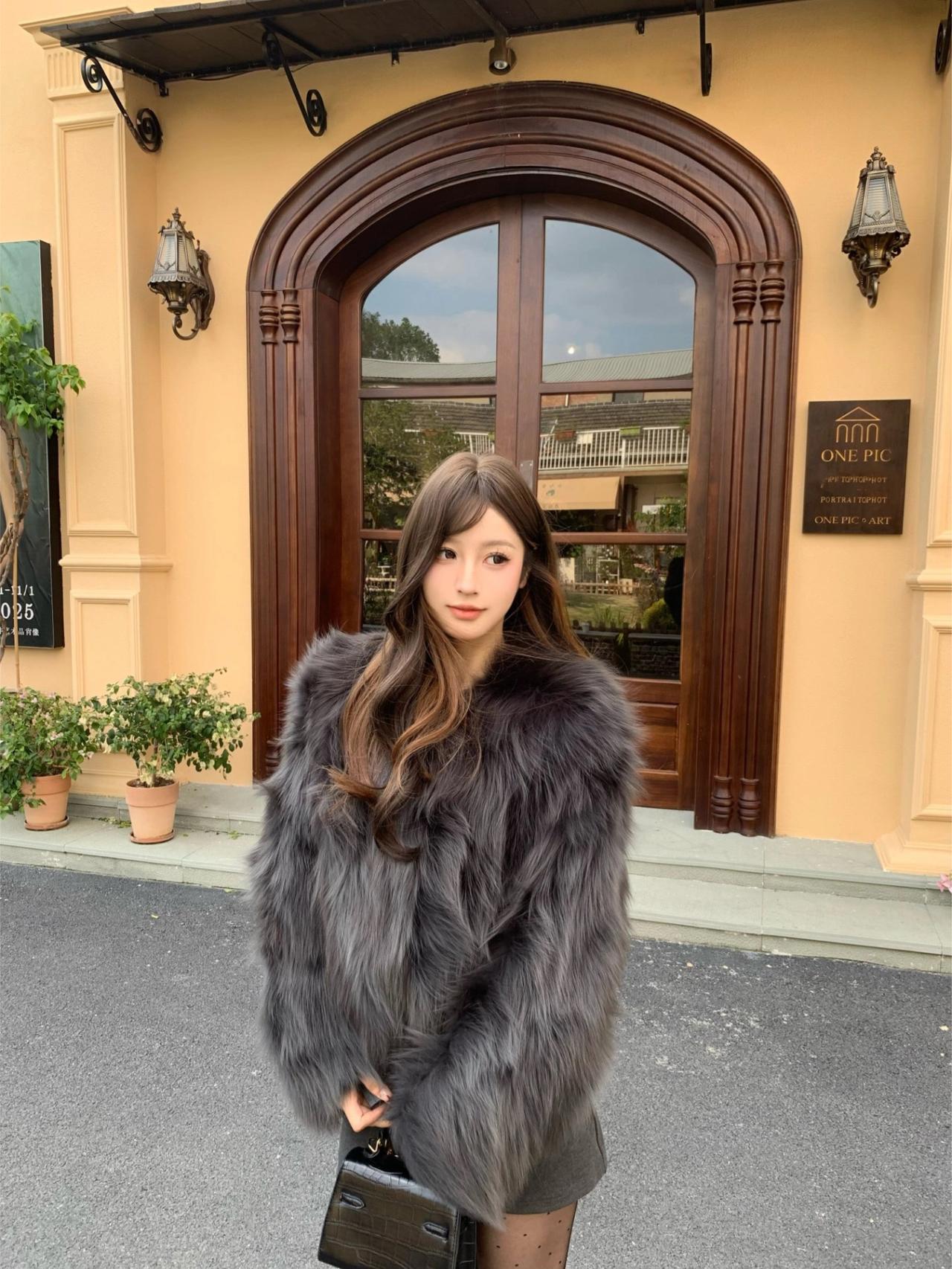 🍂秋冬显贵穿搭|||深灰色狐狸毛皮草上身真的绝了,质感高级到不行,而且巨显白! 搭配灰色包臀裙+波点黑丝,甜酷又性感~ 再踩一双棕色厚底靴,保暖又显腿长,整套look层次感直接拉满✨紫色狐狸毛大衣 毛皮草穿搭 米灰色皮草 狐狸毛穿搭 灰色羊毛皮草 皮草显贵穿搭 红色皮草穿搭