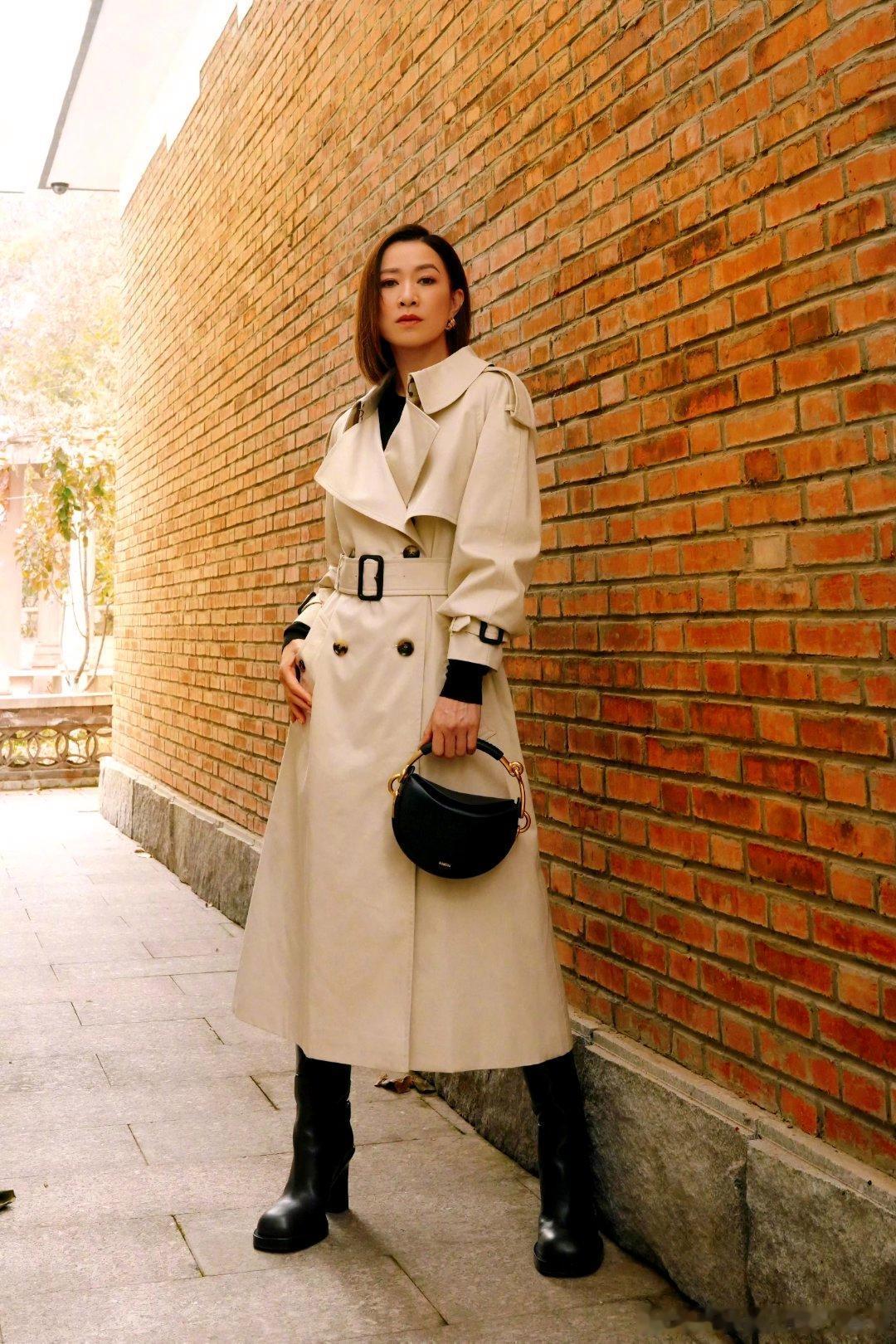 佘诗曼风衣造型|是把“秋日松弛贵气感”焊在砖墙上的优雅姐姐】 米白长风衣裹出利落线条,黑腰带掐出舒展比例,搭上皮靴和半圆包,是复古里藏的飒爽小心机