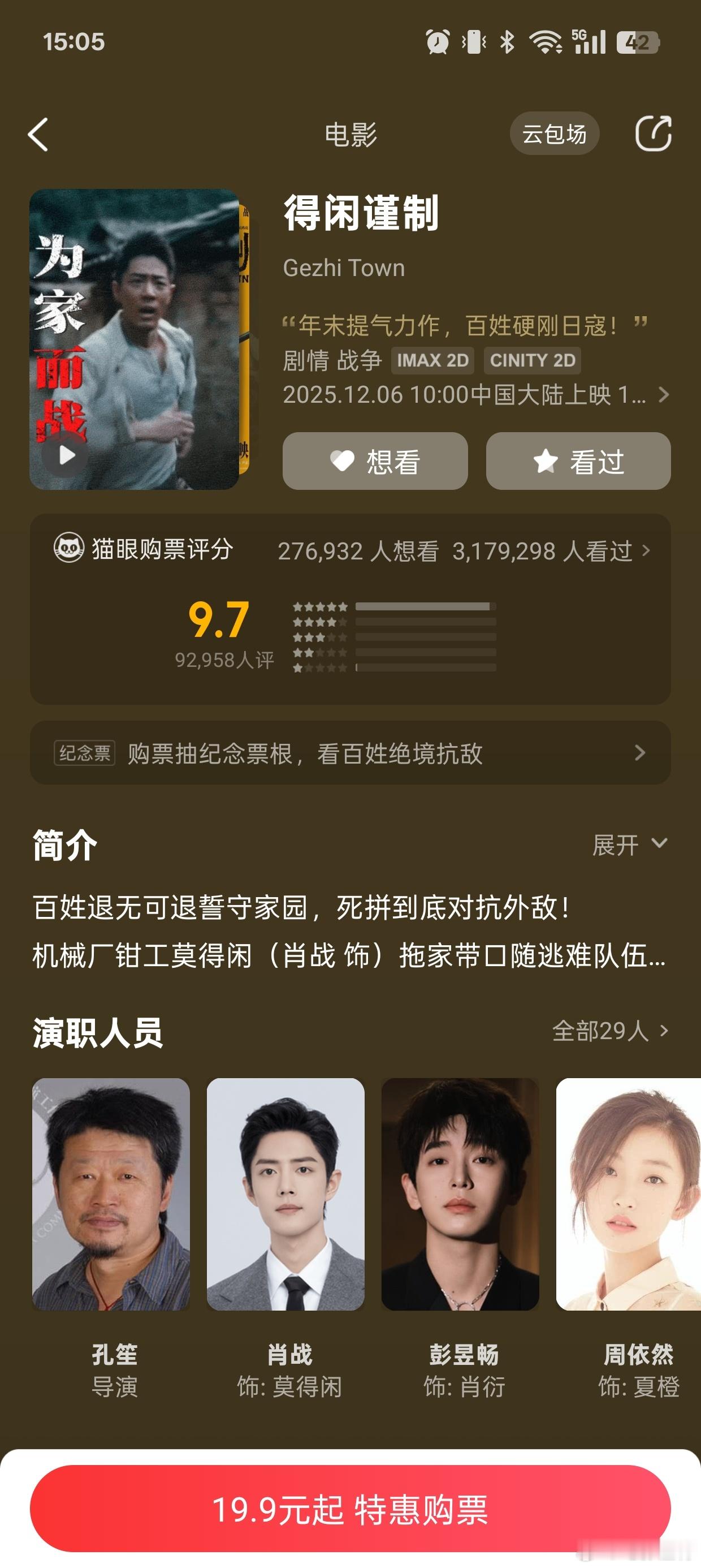 跨年电影愿听听温特怎么说 电影《得闲谨制》猫眼开分9.7分。