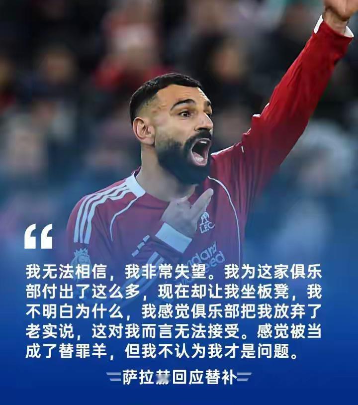 内讧!英超豪门利物浦爆发将帅内讧,连续三场比赛进入替补席的萨拉赫向媒体公开炮轰主教练斯洛特。萨拉赫与主教练斯洛特的不和被全面公开,近期成绩不佳的利物浦陷入尴尬境地。 利物浦这一这突发状况或许对国际米兰来说是好事,毕竟双方马上进行欧冠第6轮的直接较量,事关淘汰赛直通。期待国际米兰能战胜内忧外患的利物浦,打破本赛季遇强不胜的怪圈。 本赛季萨拉赫为利物浦各项赛事出场19次,其中16次首发,贡献了5粒进球和送出3次助攻。最近三场比赛,萨拉赫均被安排在了替补席,甚至有两场比赛直接未出场。