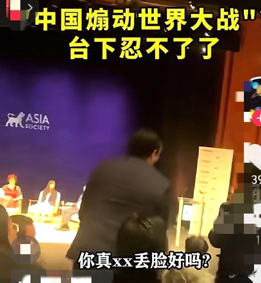 一位反华的美国学者在台上中国是第三次世界大战的煽动挑起者,下面的听众不愿意了。这位先生大声呵斥他,美国才是真的的发起者,并用粗话大骂学者无耻,看不到美军在世界各地驻扎,用三条战线拱火。 谁看到这幕不由得说,有明白人反战,有明白人理解中国的和平倡议,明白人会发声抗议歪曲污蔑中国的“教唆犯”。公道自在人心。