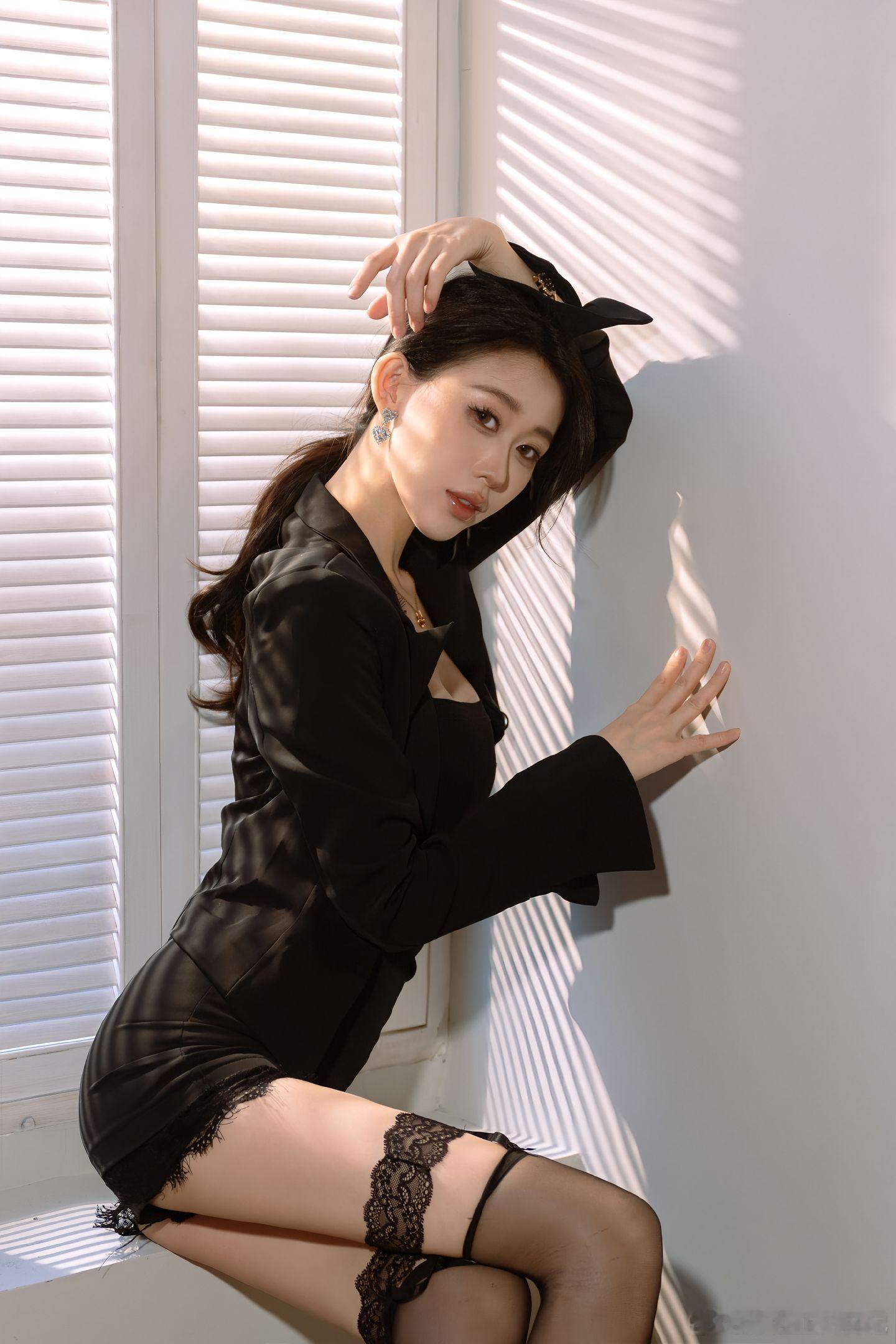 美女穿搭写真 紧身衣配黑色短裙,太欲了美女绘梦长廊