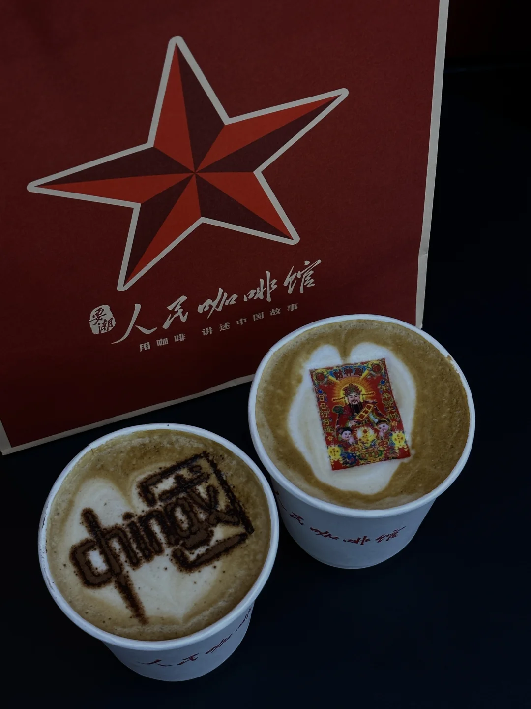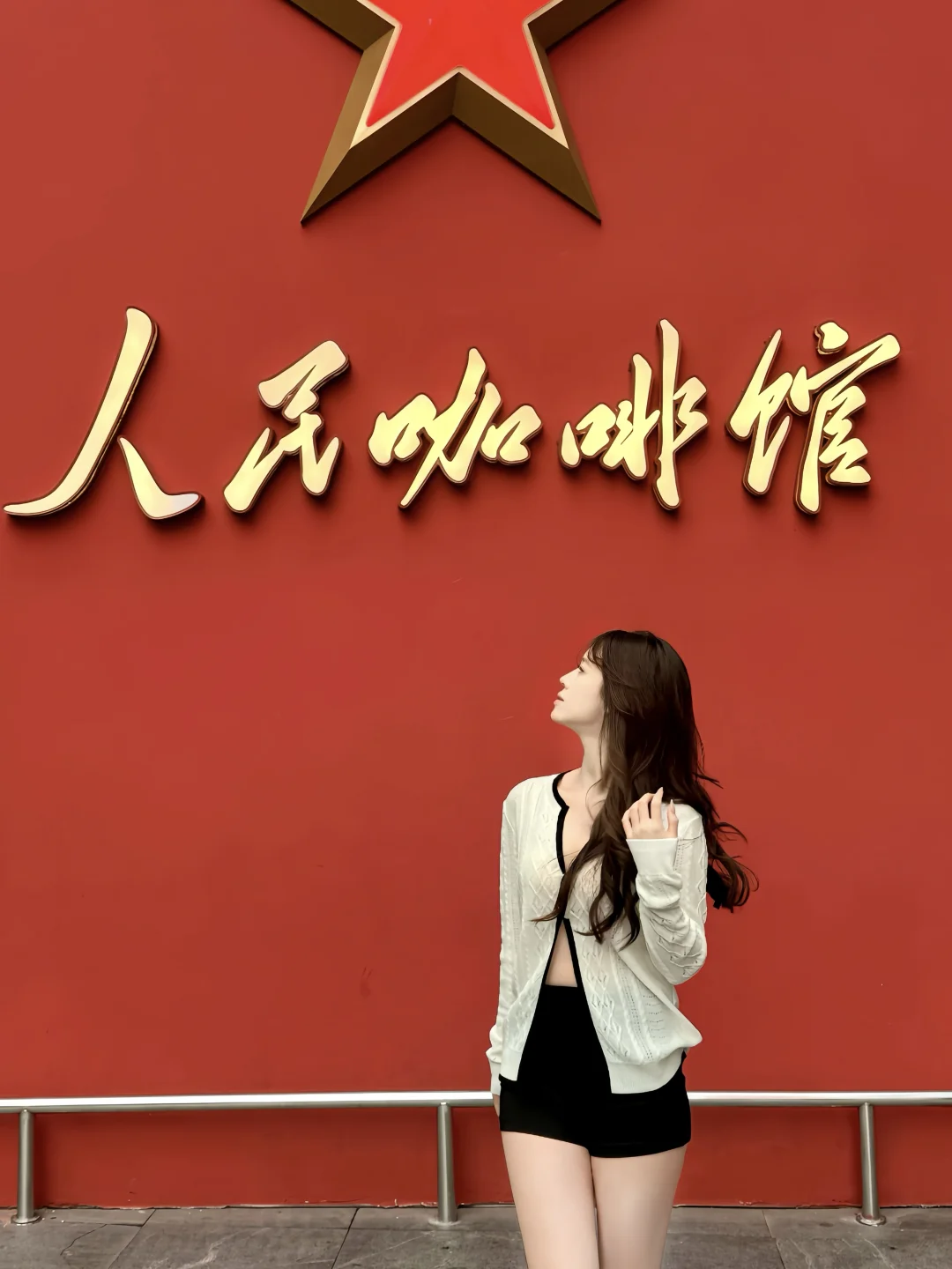 最近磁场太弱 喝点人民该喝的~☕️ 红色背景墙太好出片啦 我去的中山路那家